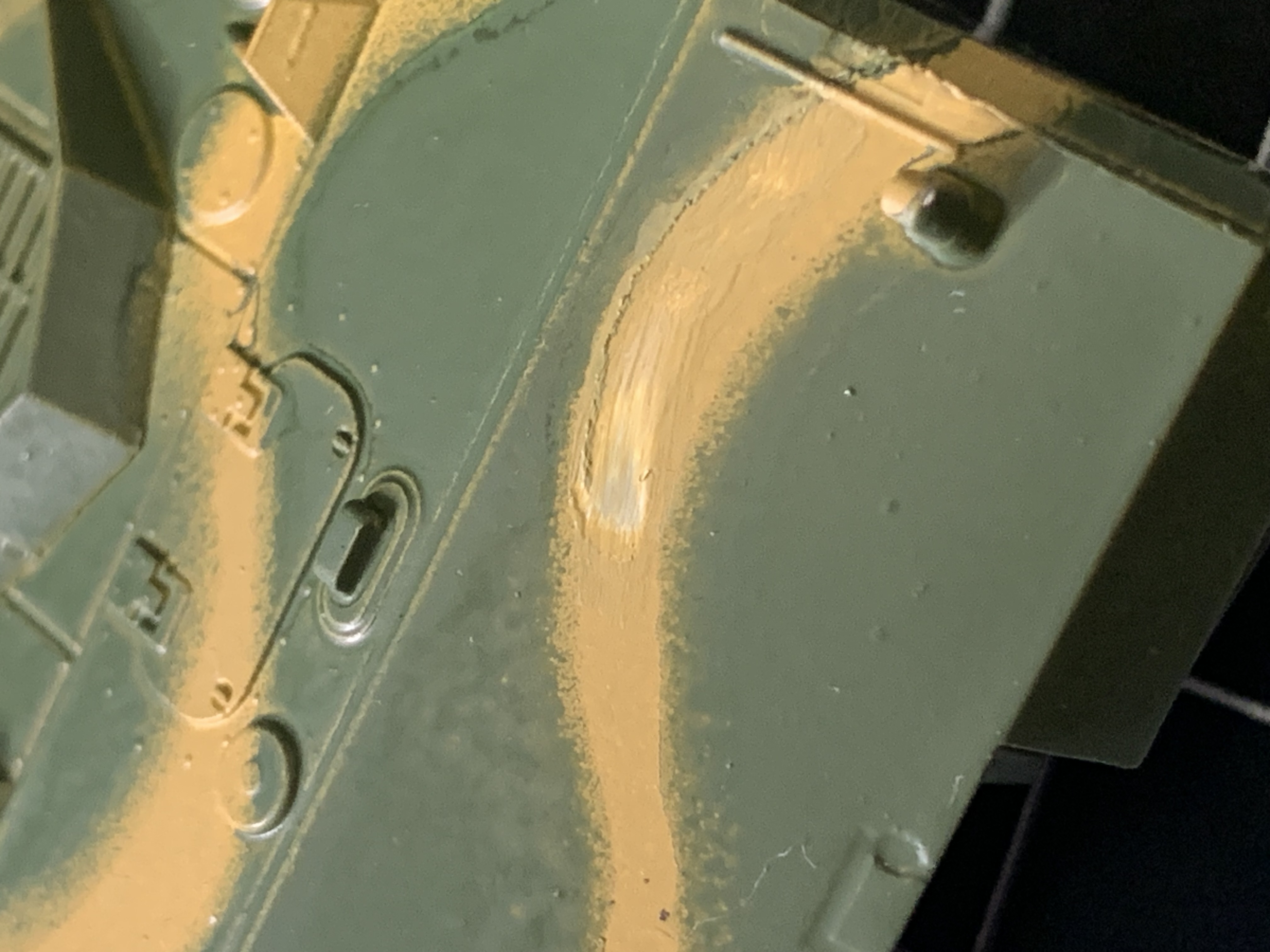 So, as long as it can be called Dunkelgelb, don't worry, it's good to go, and there were a couple real life German Panzers which looked worse in terms of "color purity" than yours.