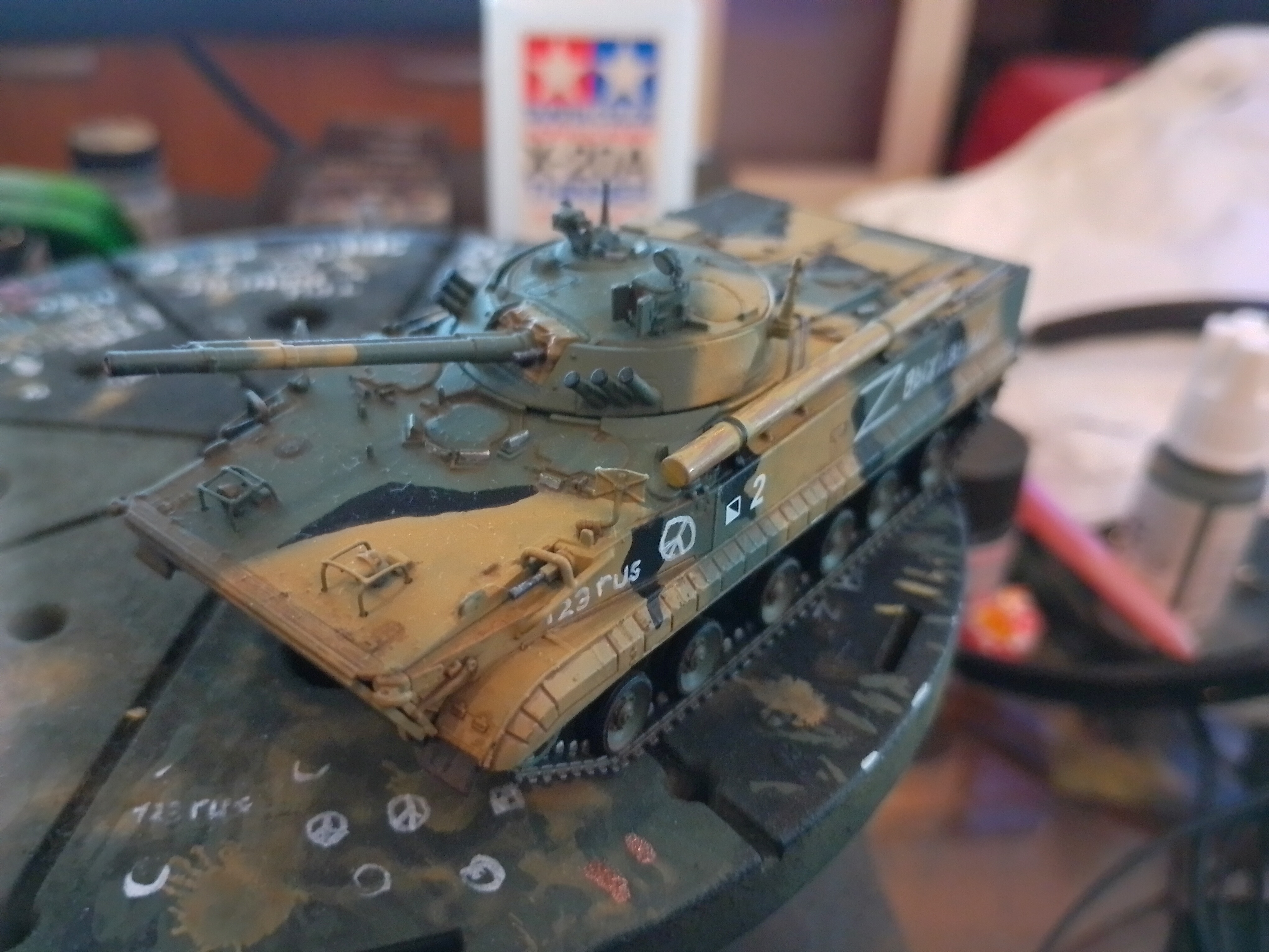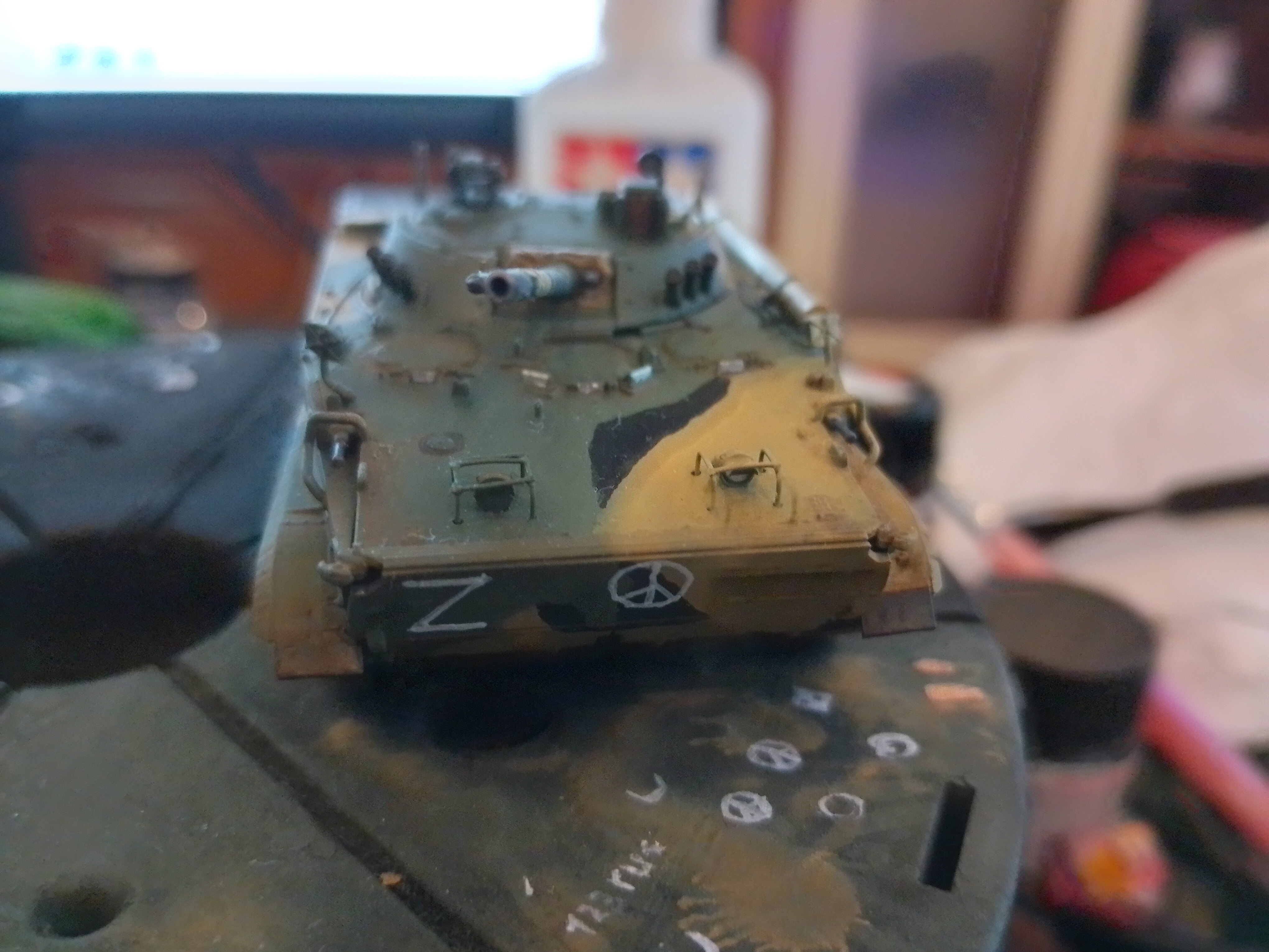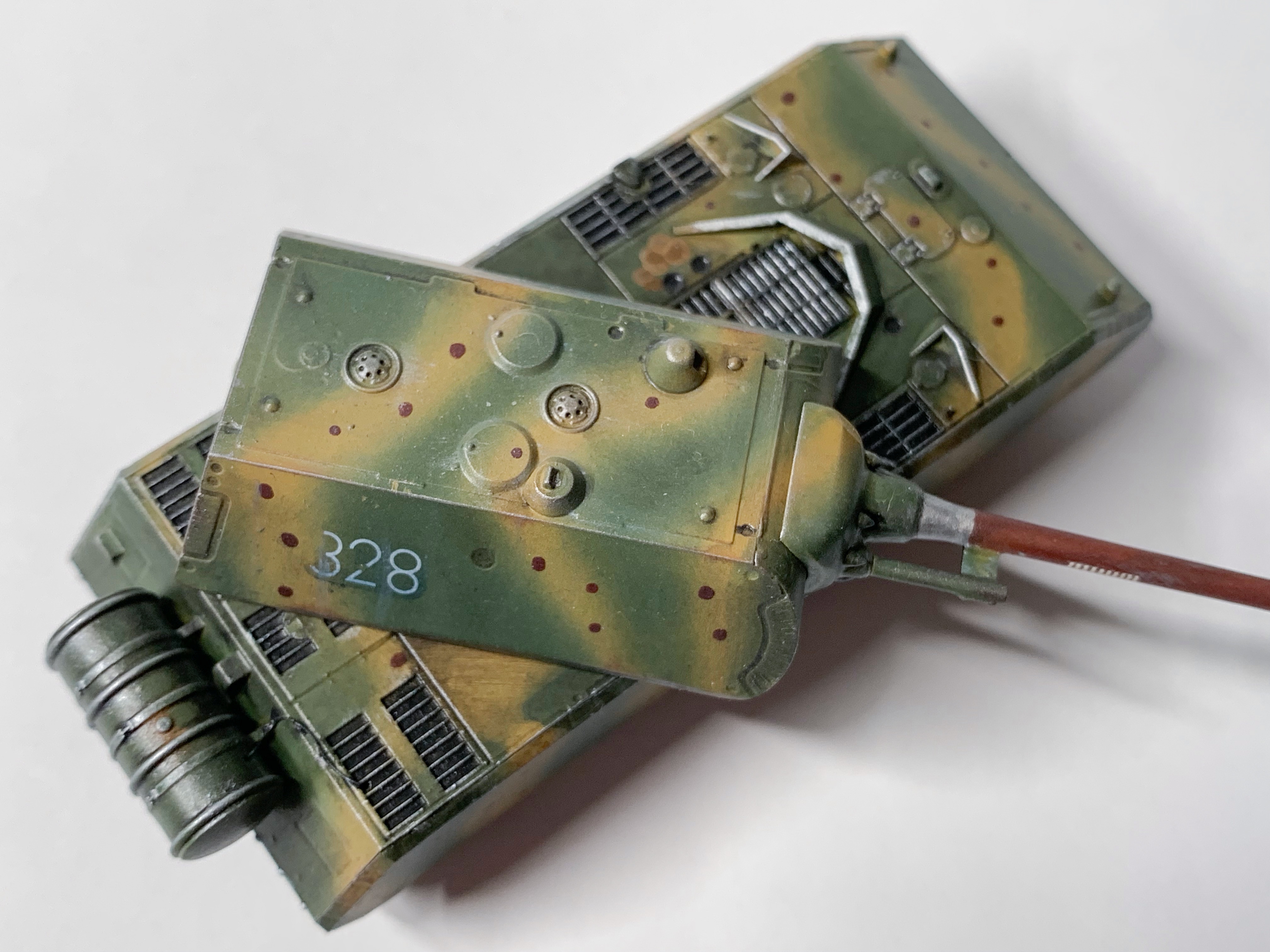 >>786134 Ну так оно и сделано не то чтобы супер. Ситуацию спасает только то что это клоп 1/72 и тупо ничего не видно. В 35 масштабе такой камуфляж кистью будет ужасным у всех, кроме пары процентов мастеров, которые кистью красят как аэрографом