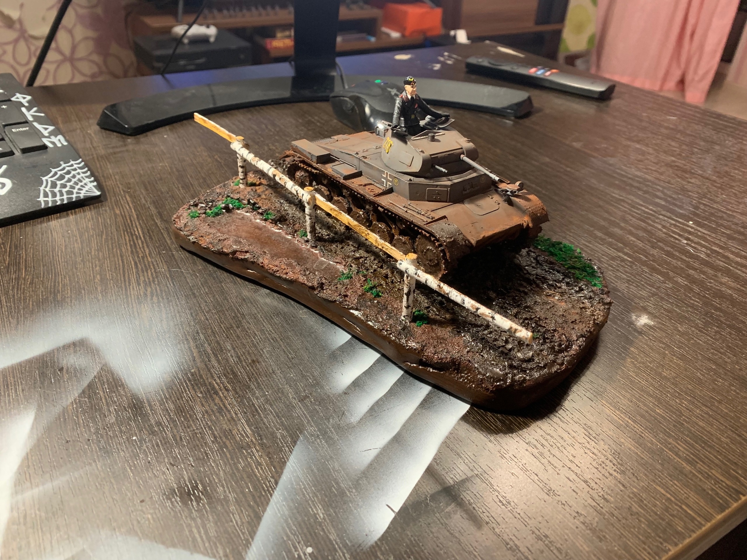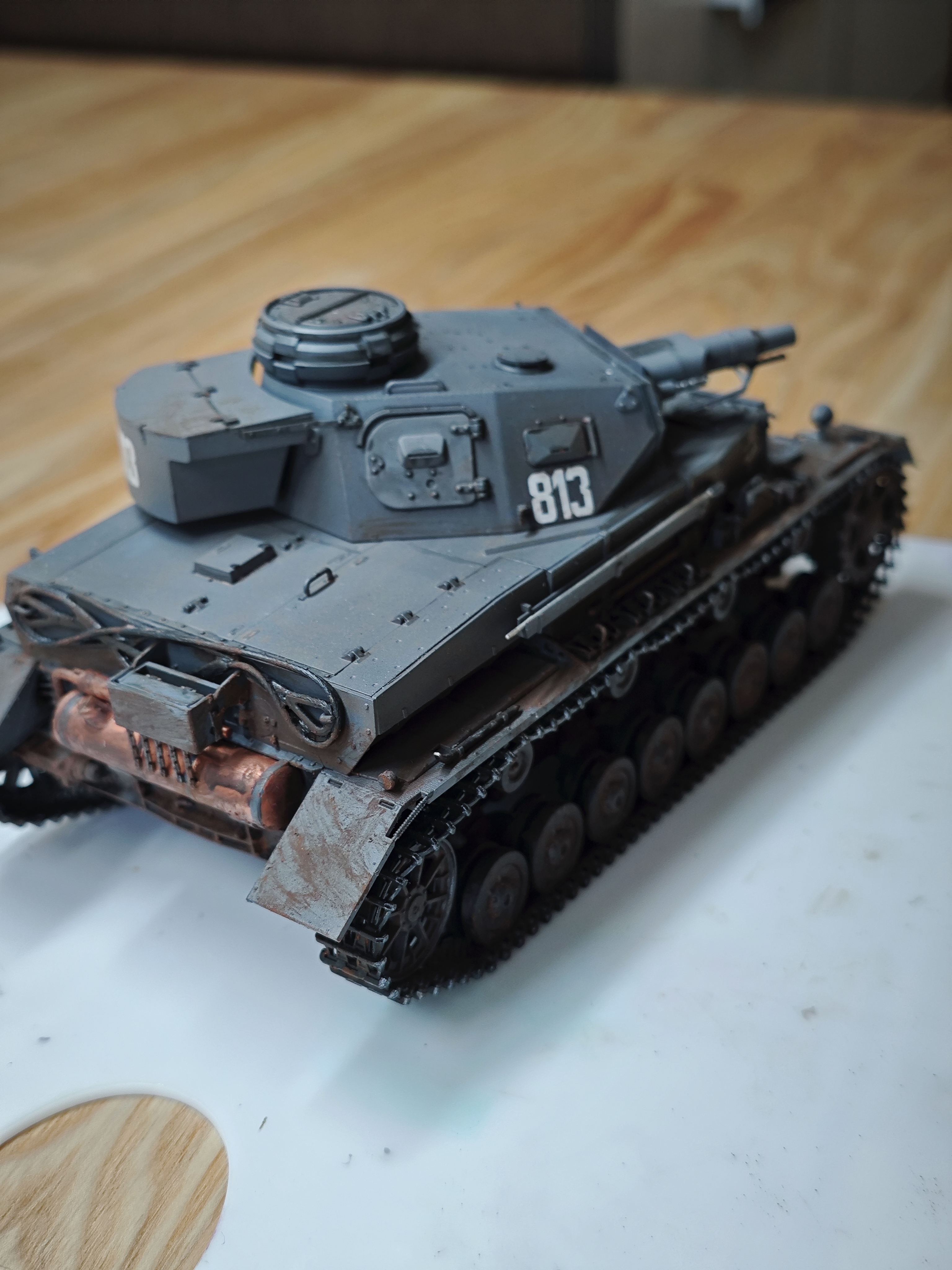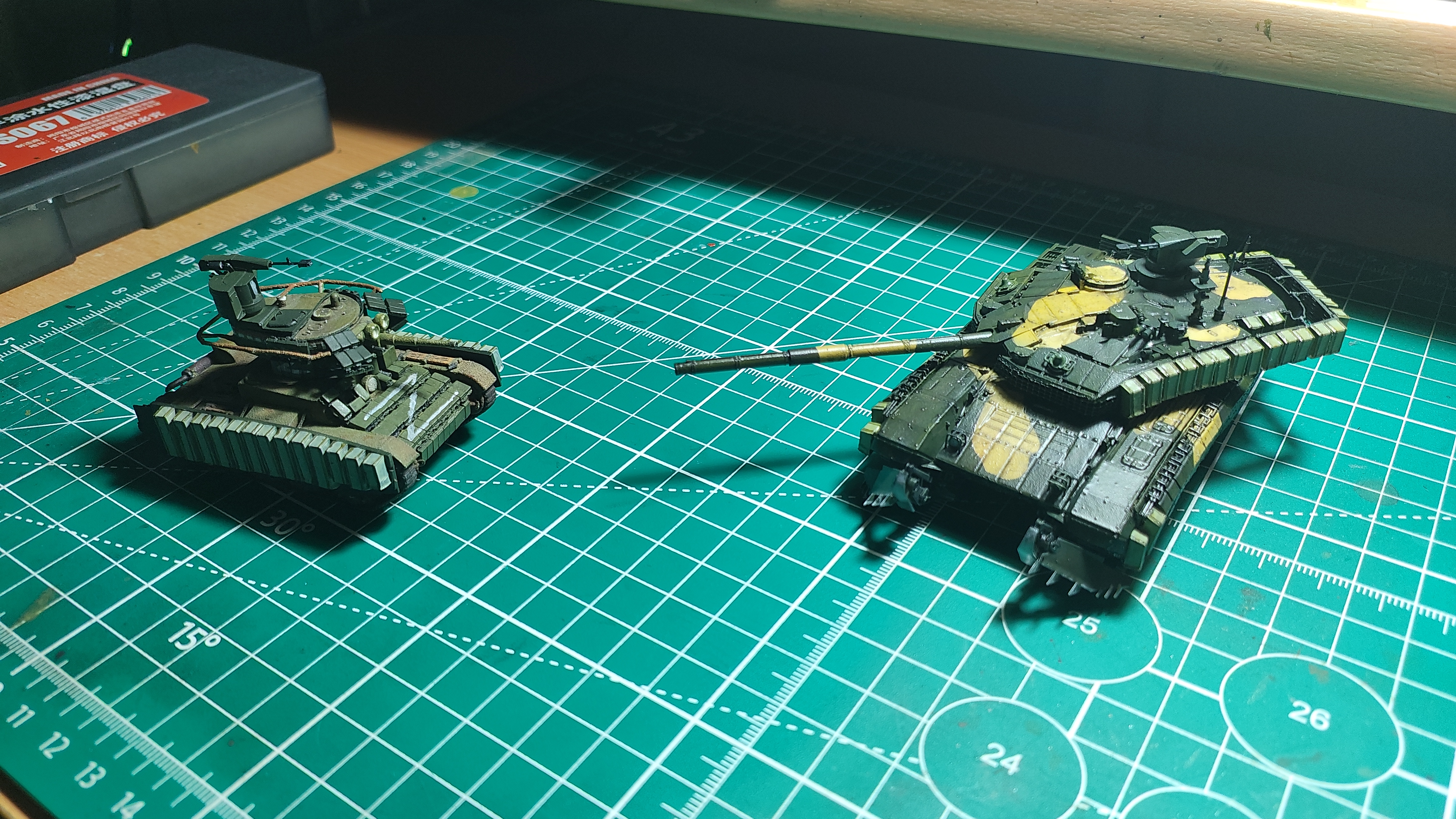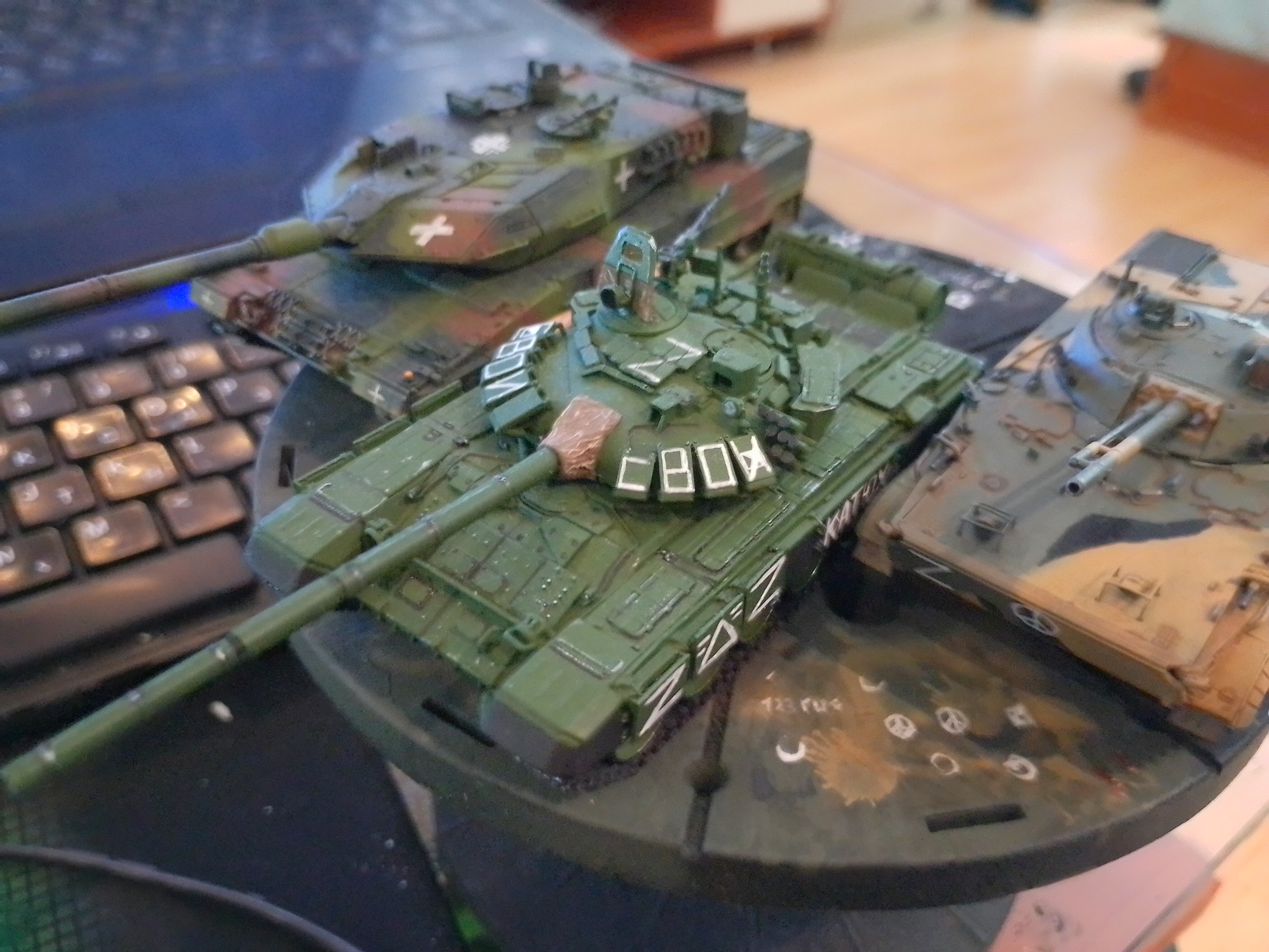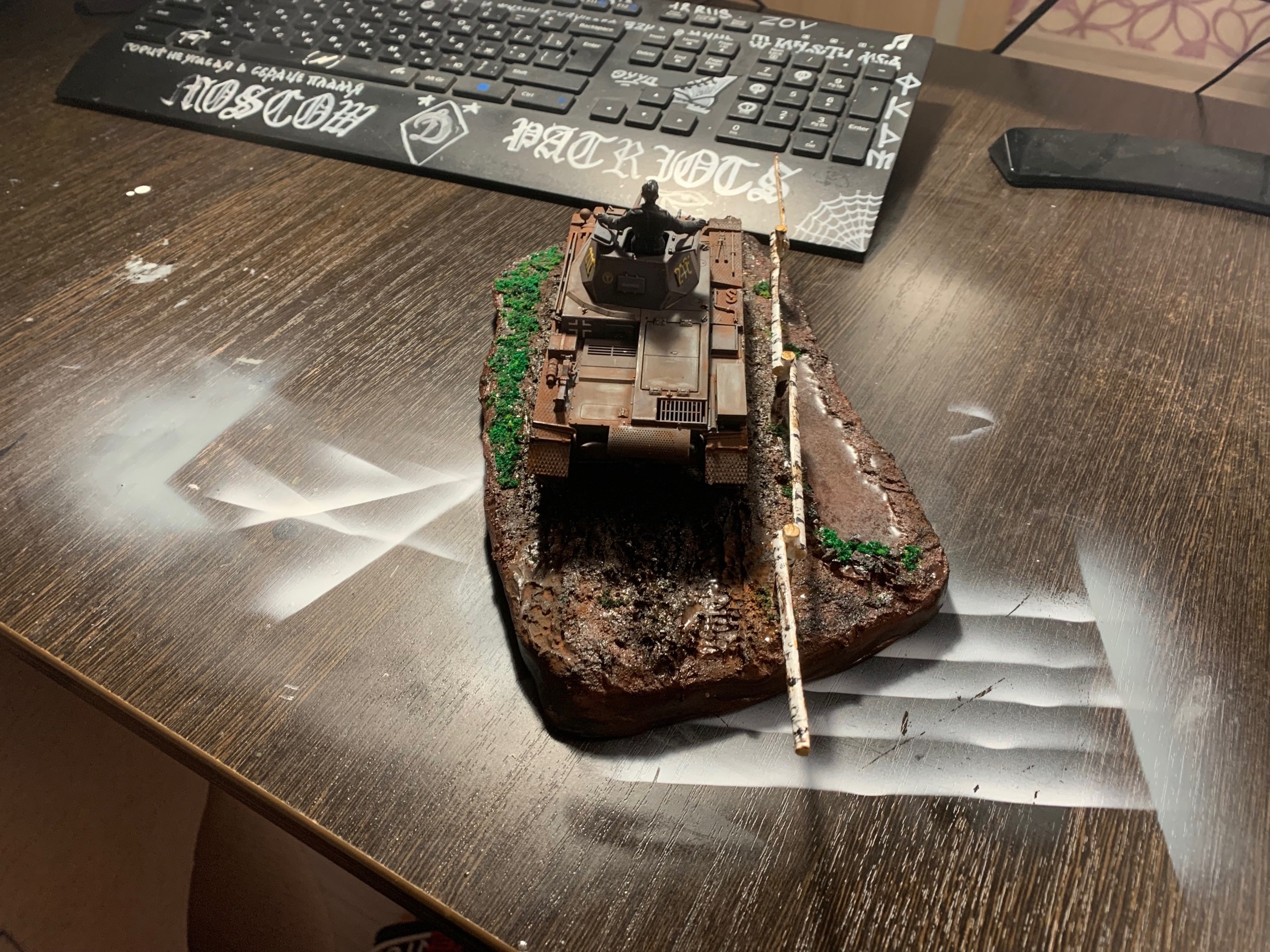 >>799314 Ну вот, еще одна готова. Стыковка от тамии это, конечно, мое почтение. Попробовал гусеницы красить в этот раз не черным, а ржавым - получилось сильно лучше, мне кажется. Хотя с грязью переборщил не к месту (но вам я этого не покажу). И да, я знаю, что зырки пиздец криво обмазал и надо подправить, но так западло снова за кисточкой лезть. Когда следующий буду обмазывать (а он уже собран, ждем грунтовку), тогда и подправлю. наверное. Победная тачка в День Победы, хотя это было не умышленно.