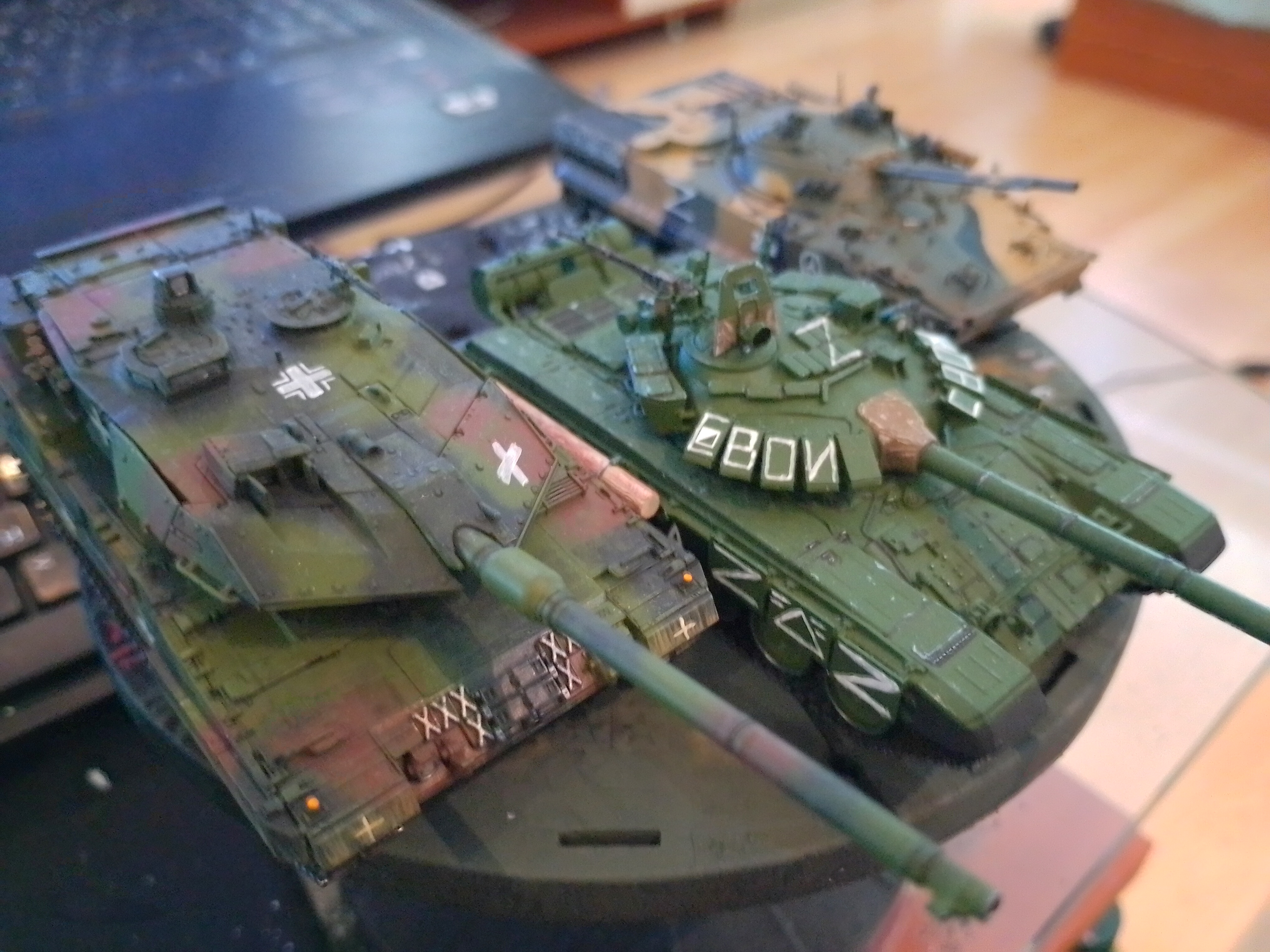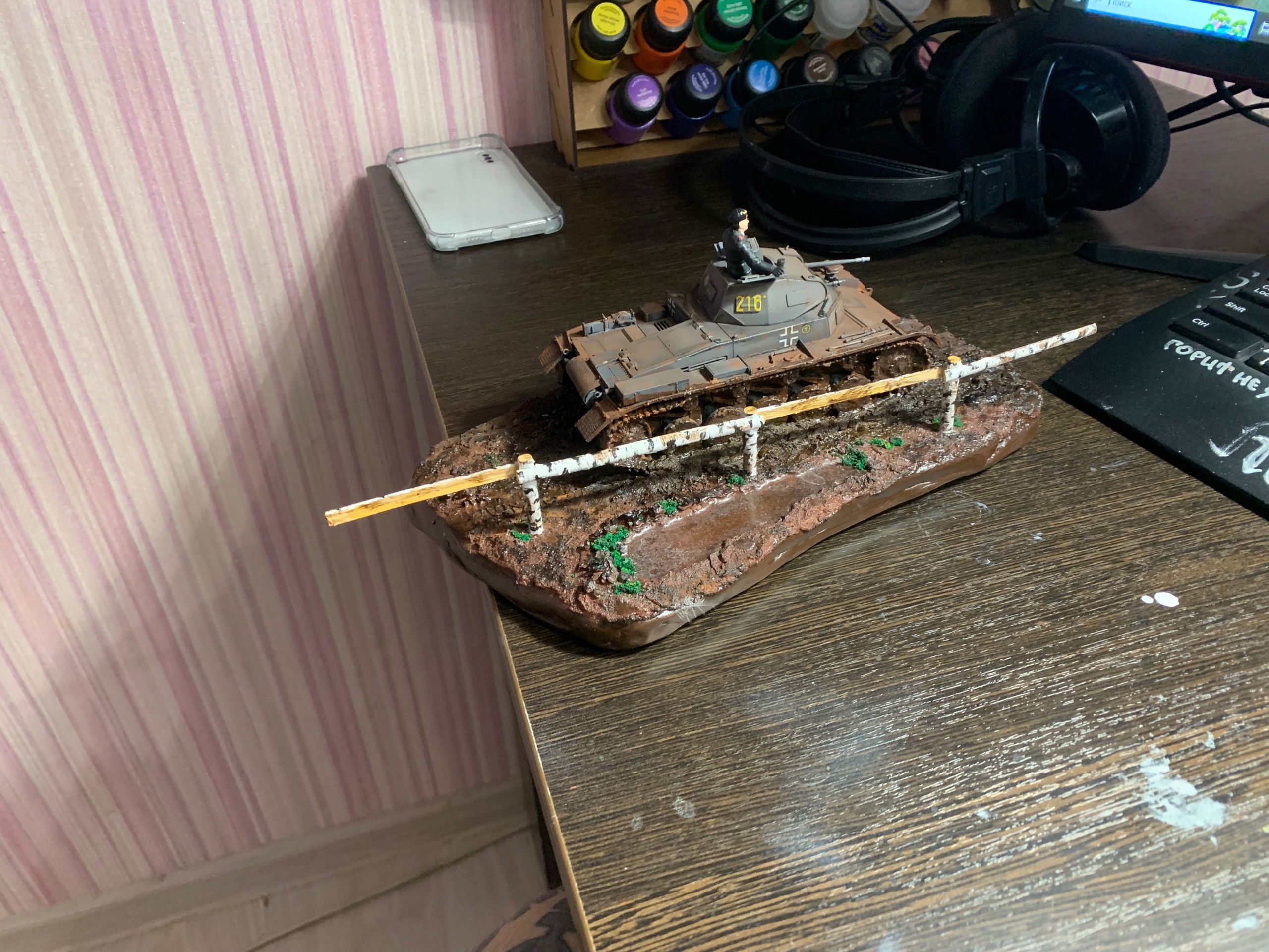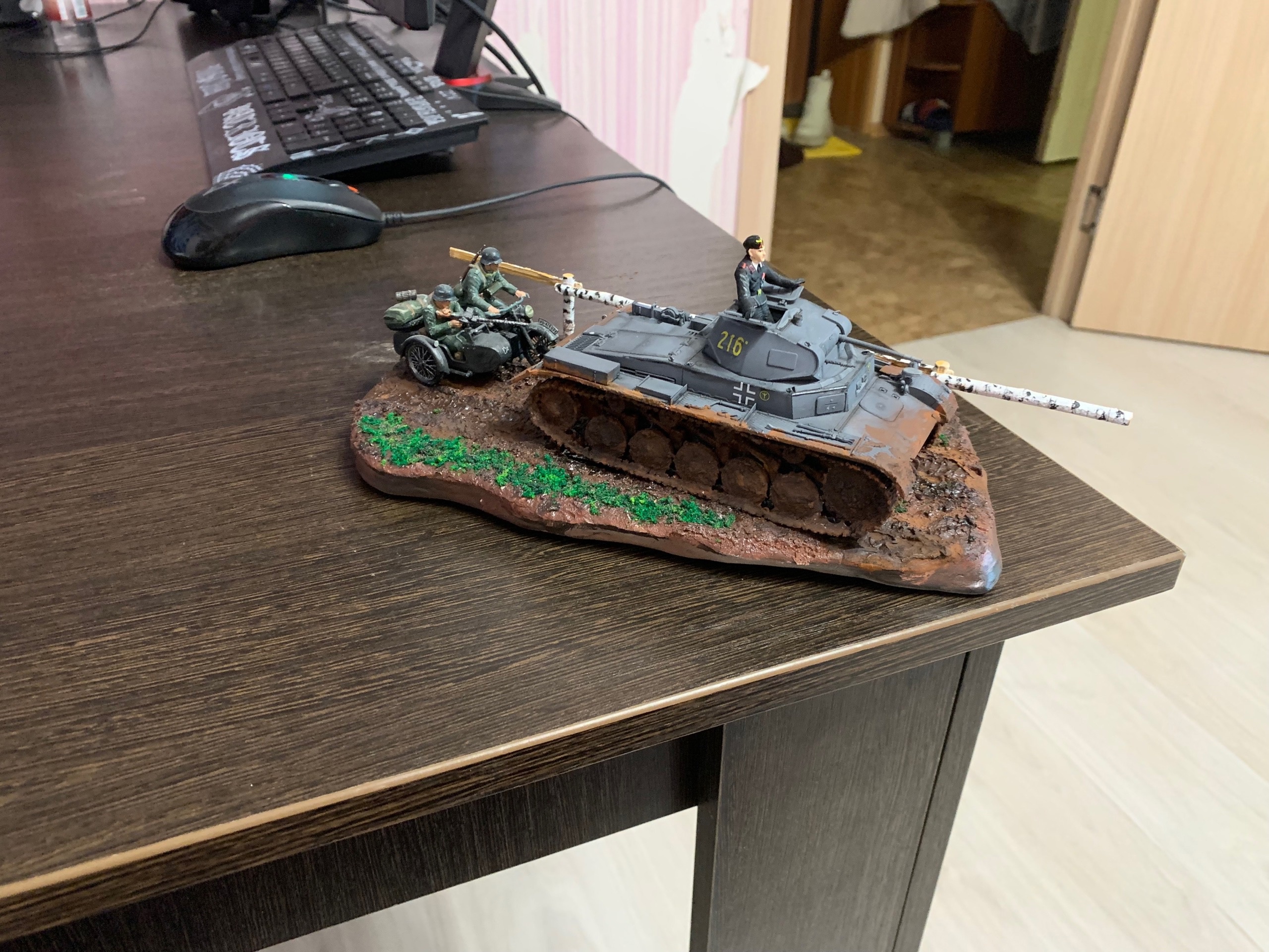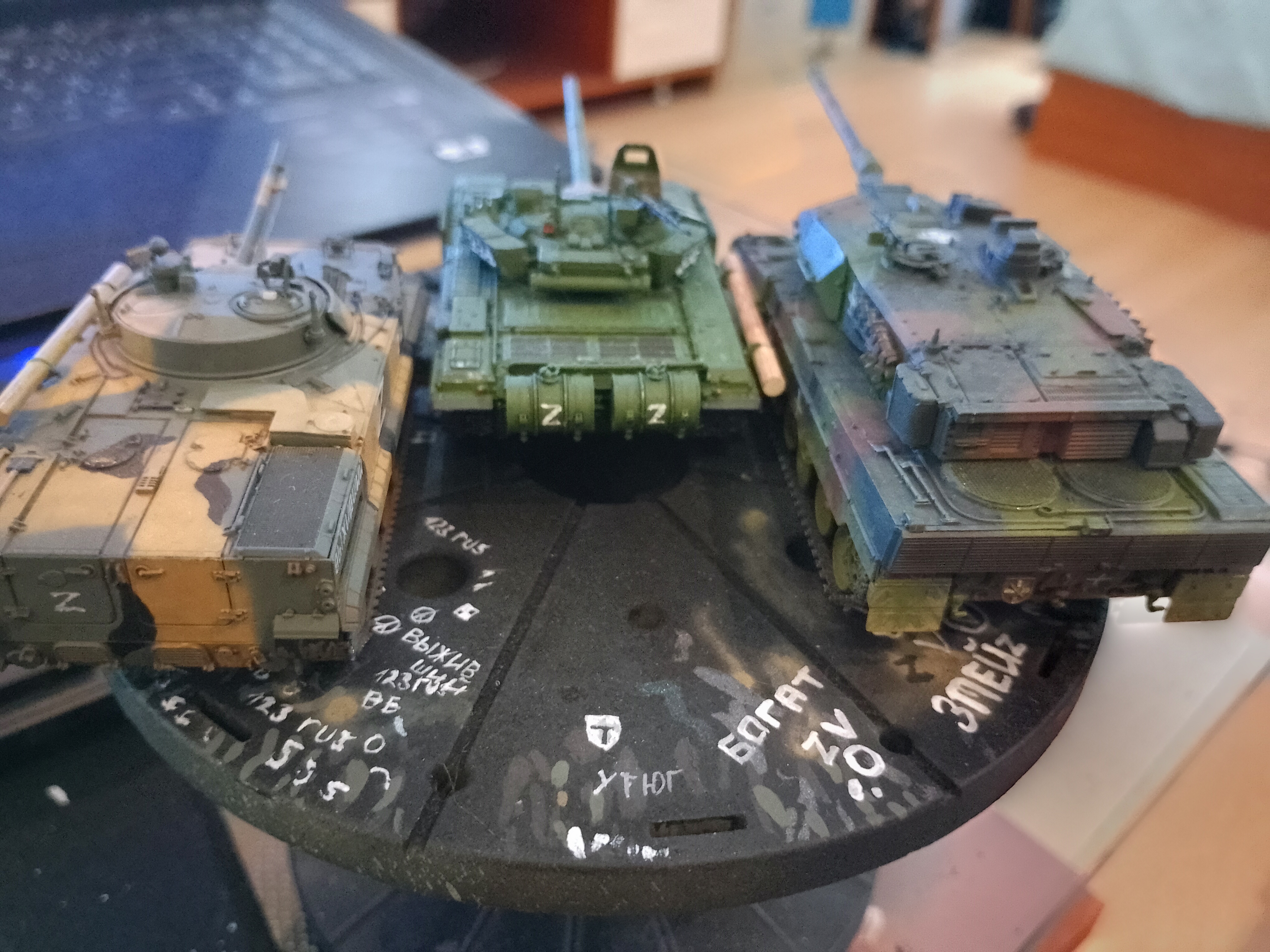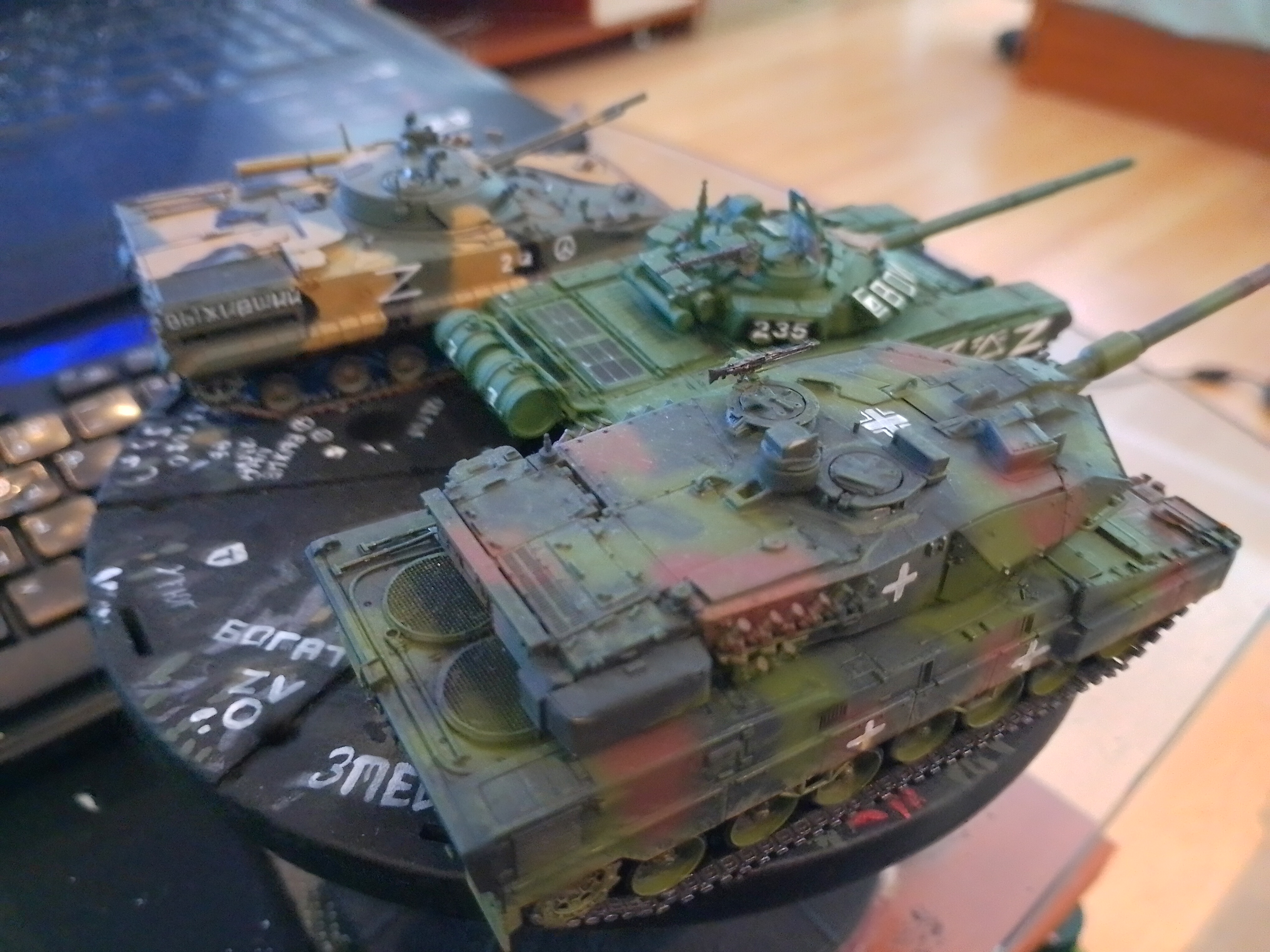 >>799314 Ну вот, еще одна готова. Стыковка от тамии это, конечно, мое почтение. Попробовал гусеницы красить в этот раз не черным, а ржавым - получилось сильно лучше, мне кажется. Хотя с грязью переборщил не к месту (но вам я этого не покажу). И да, я знаю, что зырки пиздец криво обмазал и надо подправить, но так западло снова за кисточкой лезть. Когда следующий буду обмазывать (а он уже собран, ждем грунтовку), тогда и подправлю. наверное. Победная тачка в День Победы, хотя это было не умышленно.