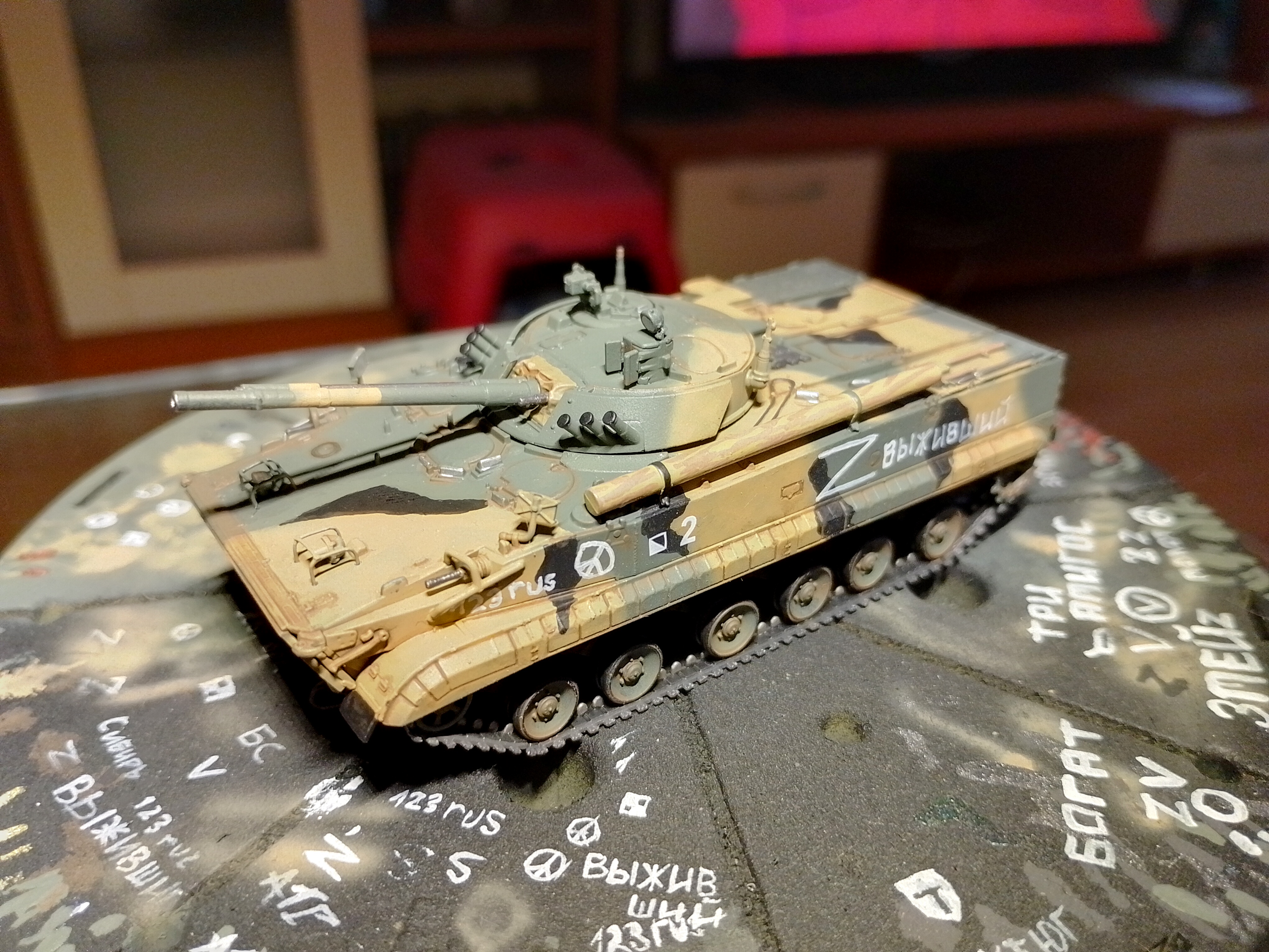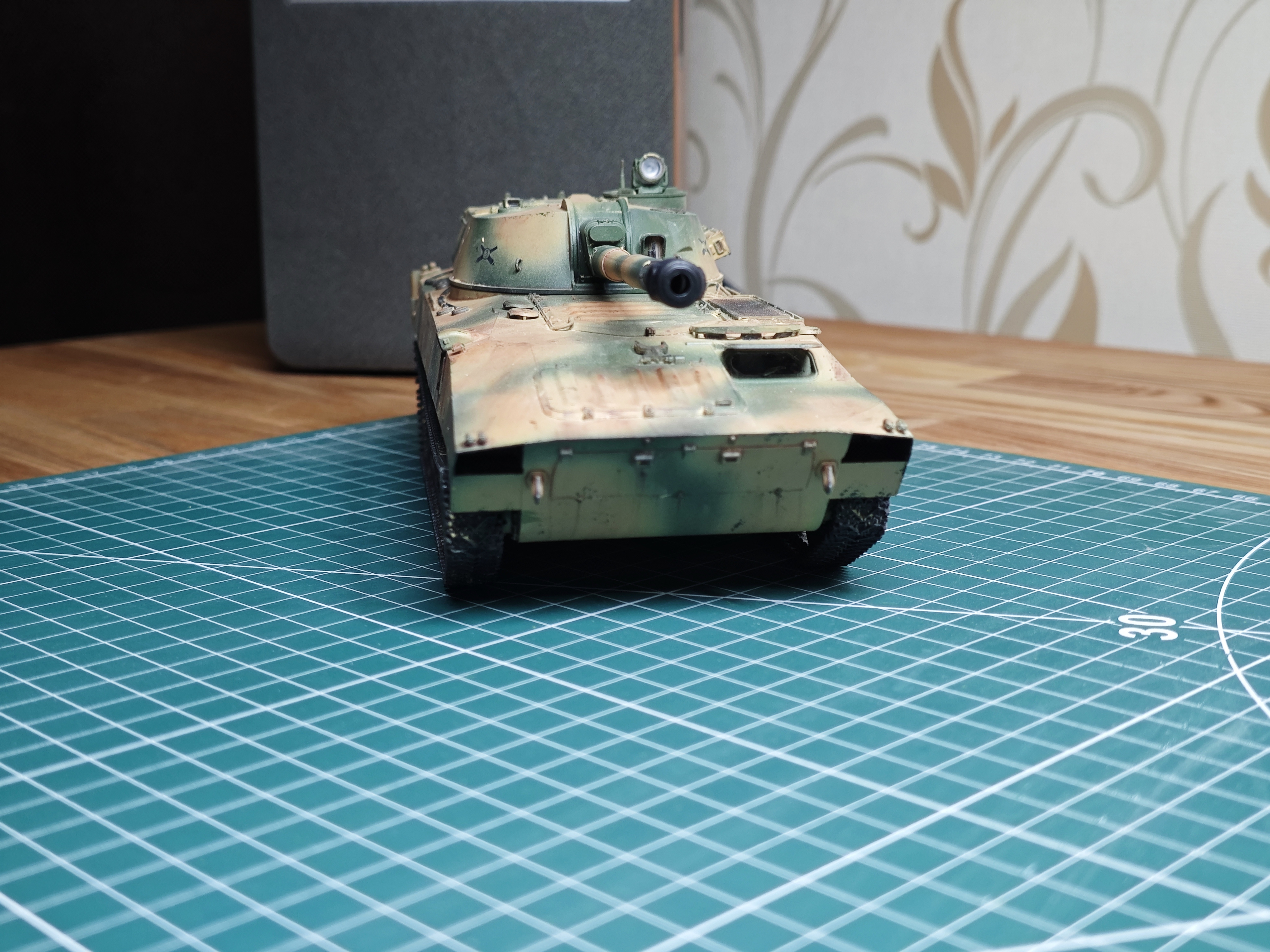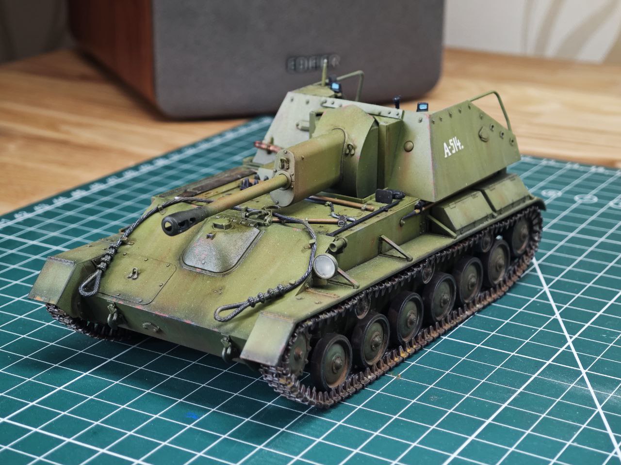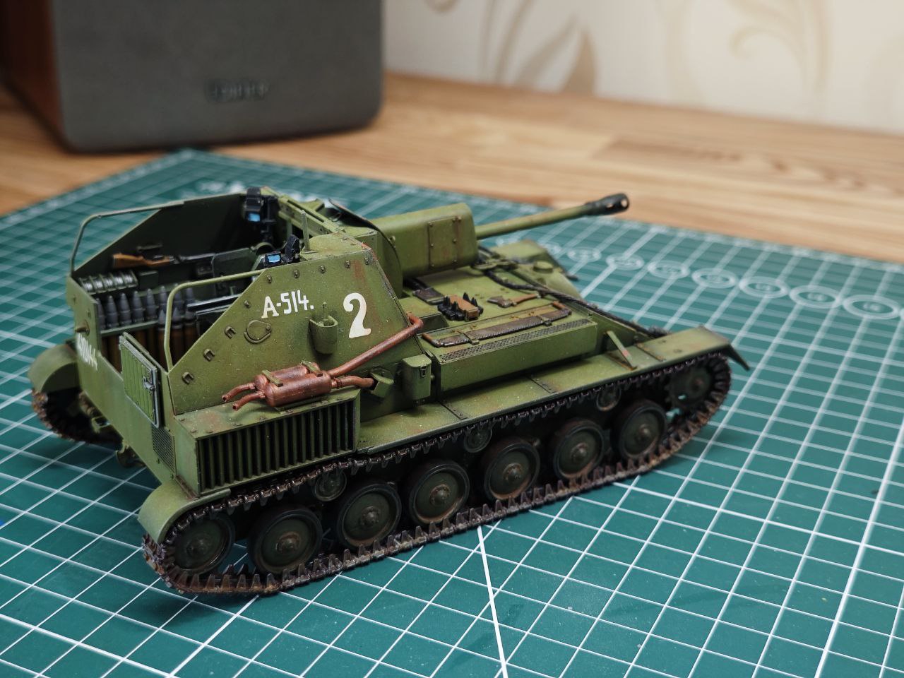 >>799486 Декаль со звездой действительно легла заметна на фото, в реальности она легла удовлетворительно. Плюс самоходка идёт в последующий проект и у меня есть время довести её до ума.