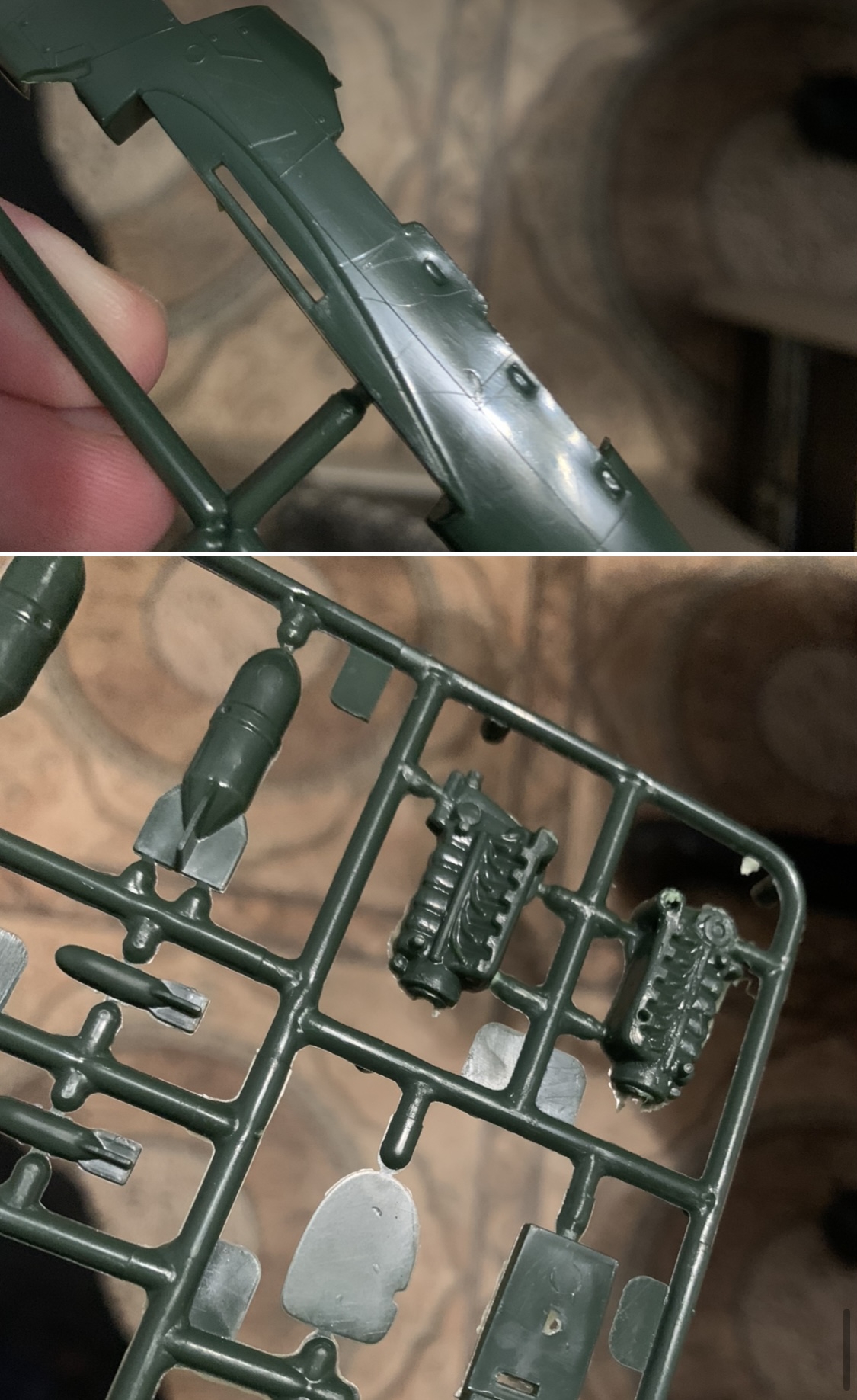 >>786730 Ну кто видел изи-киты Хоббика, тот знает, что планер там собирается из 2 деталей (пикрил). Это тупо нереально спутать ни с чем, особенно с фрогообразным членением модели 1974 года рождения. >кстати а отсутствие шва на детали = плохое качество? Наличие шва расшивки не означает автоматом, что с моделью все заебись. Расшивка может быть не на месте или может быть немасштабной канавой. Я бы на твоем месте прежде поискал на этих литниках детали ниш шасси, например. Спойлер: их там нет (см. третью пикчу)