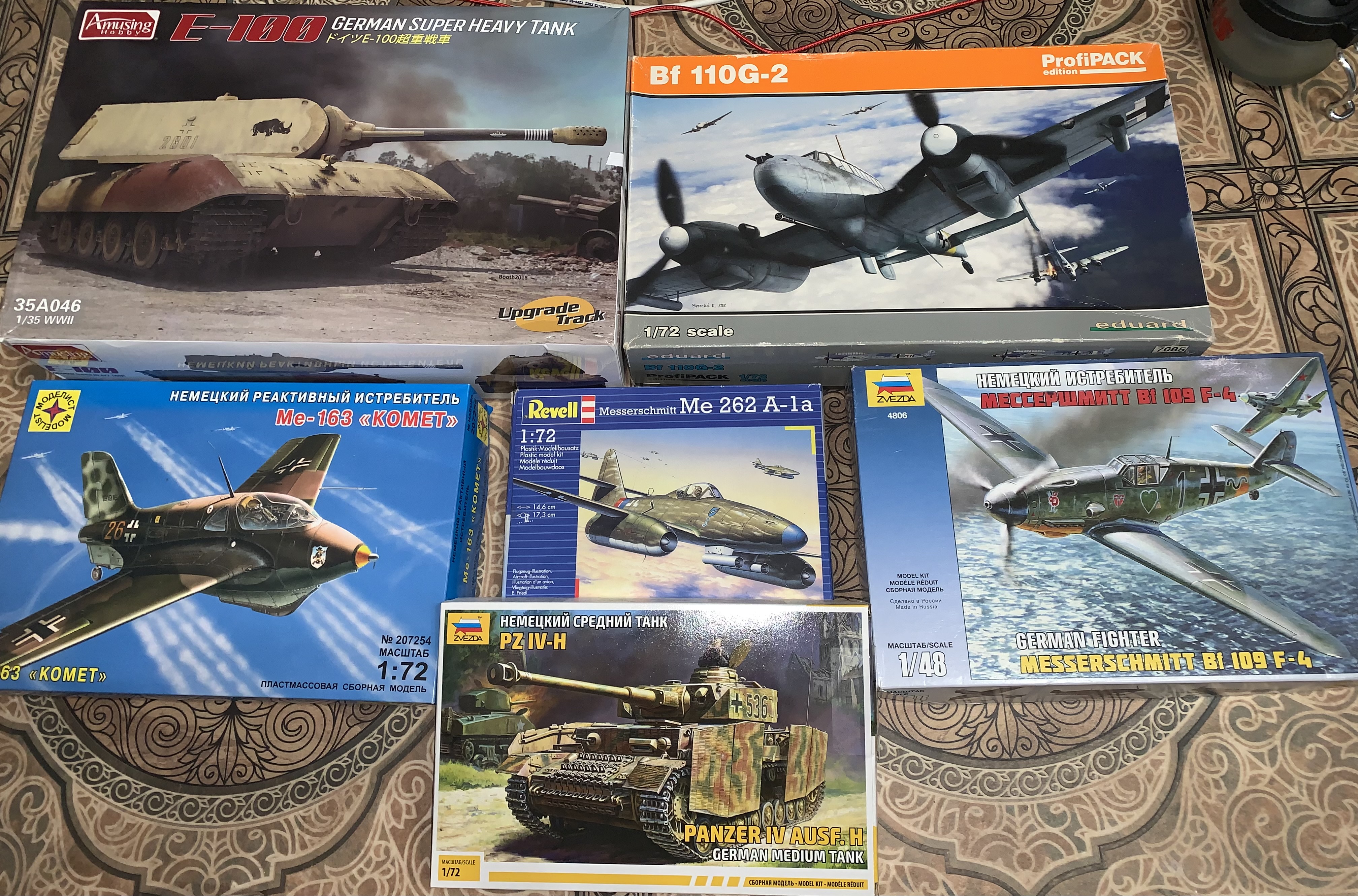 сегодня забрал последние вакуумные. если бы я знал, какой там толстый пластик и сколько сил уйдёт на допиливание, взял бы 1-2 максимум. но пока что мне интересен процесс. радует, что у юнкерса самая ламповая и подробная инструкция: детали по номерам, пособие к ваккумным моделям и на обратной стороне пара окрасок. и на лохито взял 262 от ревелла, всего за 700. сравнил в ютубе- детали оригинальные, ещё инструкция на немецком. всяко лучше франкештейна от моделиста за 1300. короче моделей у меня на пару месяцев думаю минимум. не считаю Е100 в 35м, который придёт под НГ, но собирать его будет жалко, надо апать скиллы