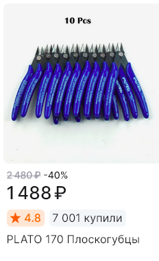 >>796523 Dsplae оверпрайс китайское говнецо с претензией на илитарность. Не рекомендую. Tamiya оверпрайс. Не рекомендую. Мачете китайское говно. За недорого можно взять. У меня есть японские бокорезы Victor VMN150B, Engineer NS-06, Engineer NS-04, Engineer NZ-13, GodHand Ultimate Nipper 5.0, российские/советские ИН-0004 (с твердосплавными напайками), и куча ноунейм китайских типа Plato 170. В итоге: Японские Victor, Engineer годнота, но по разумной цене можно купить только в Японии (1000-2000 йен). Рекомендую. GodHand лютейший оверпрайс. Брал в Японии за 6500 йен в Volks. Не рекомендую. ИН-0004 топище за свои деньги, хоть и выглядят сурово. Брал лет 15 назад на радиорынке за 150руб. Рекомендую. Plato 170 удовлетворительно, но с учетом их цены можно считать годнотой. Рекомендую.