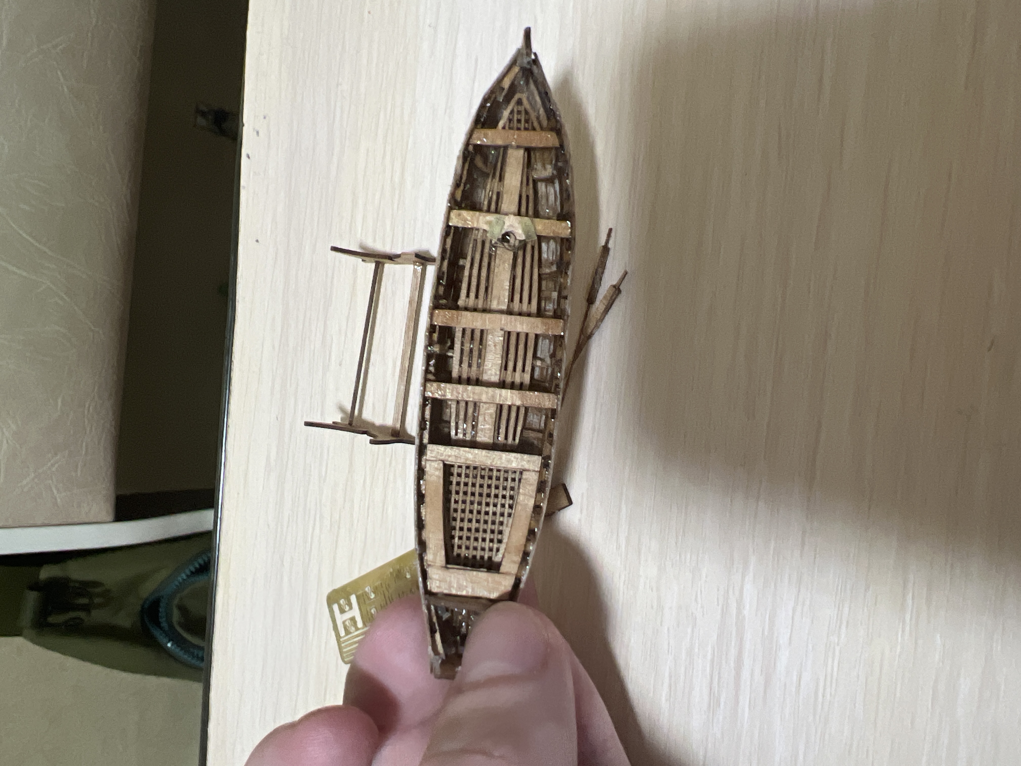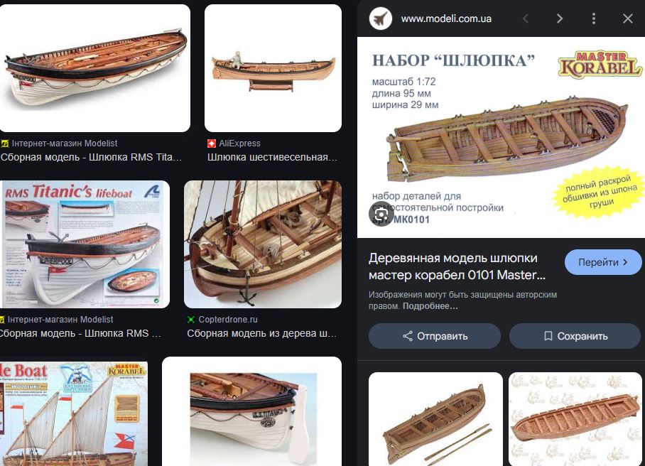 >>799500 >>799543 Взял себе от компании Эскадра набор «Люгер Петергоф» там большой кораблик и две шлюпки в составе. Ранее не делал и начал сразу с большого, прикурил и переключился на шлюпки, вроде более менее вкатываюсь, хоть и с косяками. На фото шлюпка готова ~ процентов на 90. Купил в магазине моделистов, но есть и на озоне, включая доп украшательные элементы