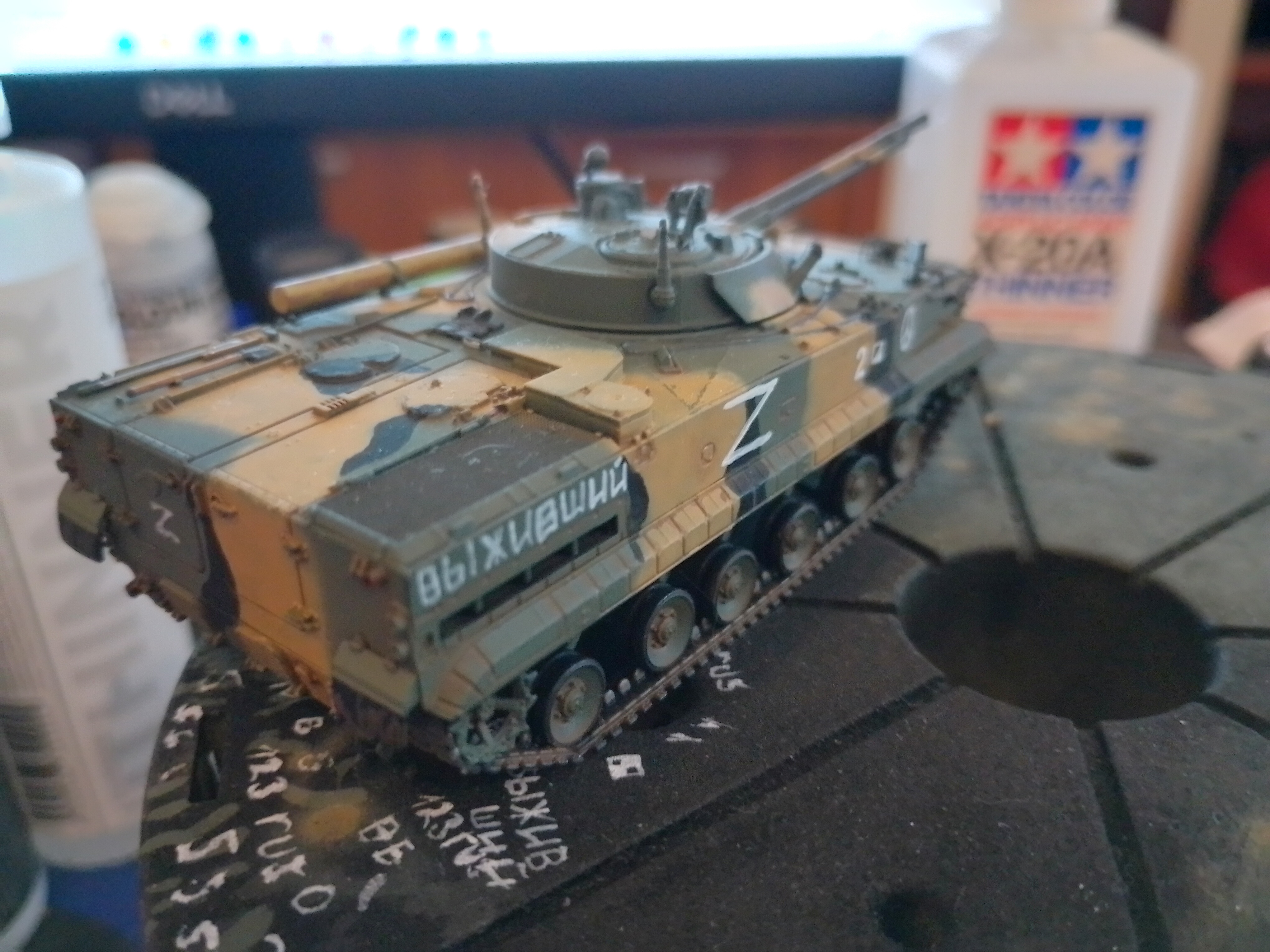>>794796 Новый обмаз готов. Начинаю подозревать себя в необучаемости - опять какого-то говна навернул с везерингом и по аккуратности мог бы стараться получше. Не совладать с пигментом пока. Я тут горел на клей т7000 для травленки - а он в итоге как будто бы и ниче так. Он высыхает мягким, поэтому если когда даванешь деталь пальцем - он не моментально отваливается, а еще держится на своем "подвижном" соединении. Так же попробовал жижку для приварки картинок - нраица, подложку прям хорошо разъедает. Только расход большой - из 40 мл 30 уже потратил на одну модель возможно это связано с тем, что я опрокинул банку и все пролил на стол