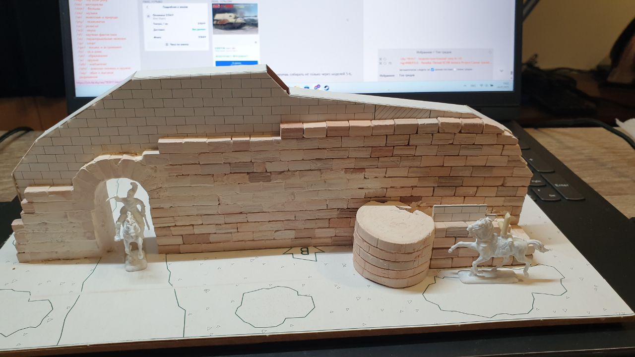>>801641 В общем начал его собирать. У меня план. Я хочу сделать диараму. Там будет этот дом и, положим, эта french пушка. Пытаюсь подогнать кирпичики, они достаточно покладистые, надфилем и пилочкой для маникюра ровняются быстро. Для меня пока актуальны два вопроса: 1. Дырки между кирпичами. Смотрел видео разных моделистов они говрят что разные щели небольшие добавляют модели аутентичности и уникальности с этим я согласен. Тем более по задумке набора с кирпичиками - это руины смотровой вышки, так что логично что кирпичи лежат не ровно. С другой стороны, дырки всегда можно шпаклевкой заделать и подровнять чтобы было ровнее. 2. В инструкции один из советов покрыть лаком в конце. Пока не уверен что буду так делать, но какими то красками, верочтно, поробую подкрасить или затемнить и тд.