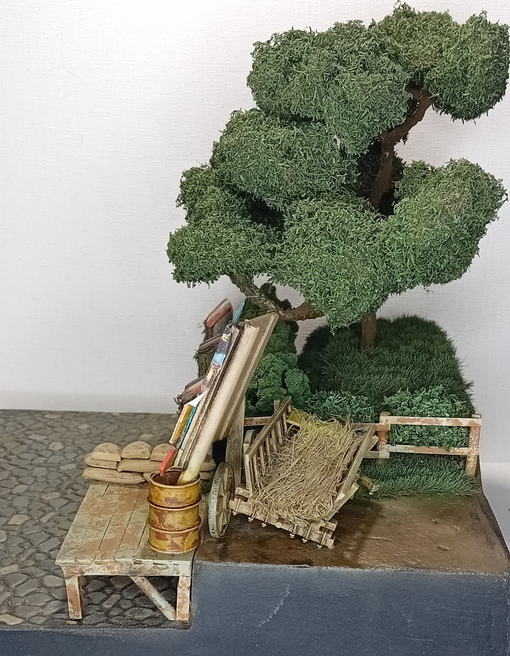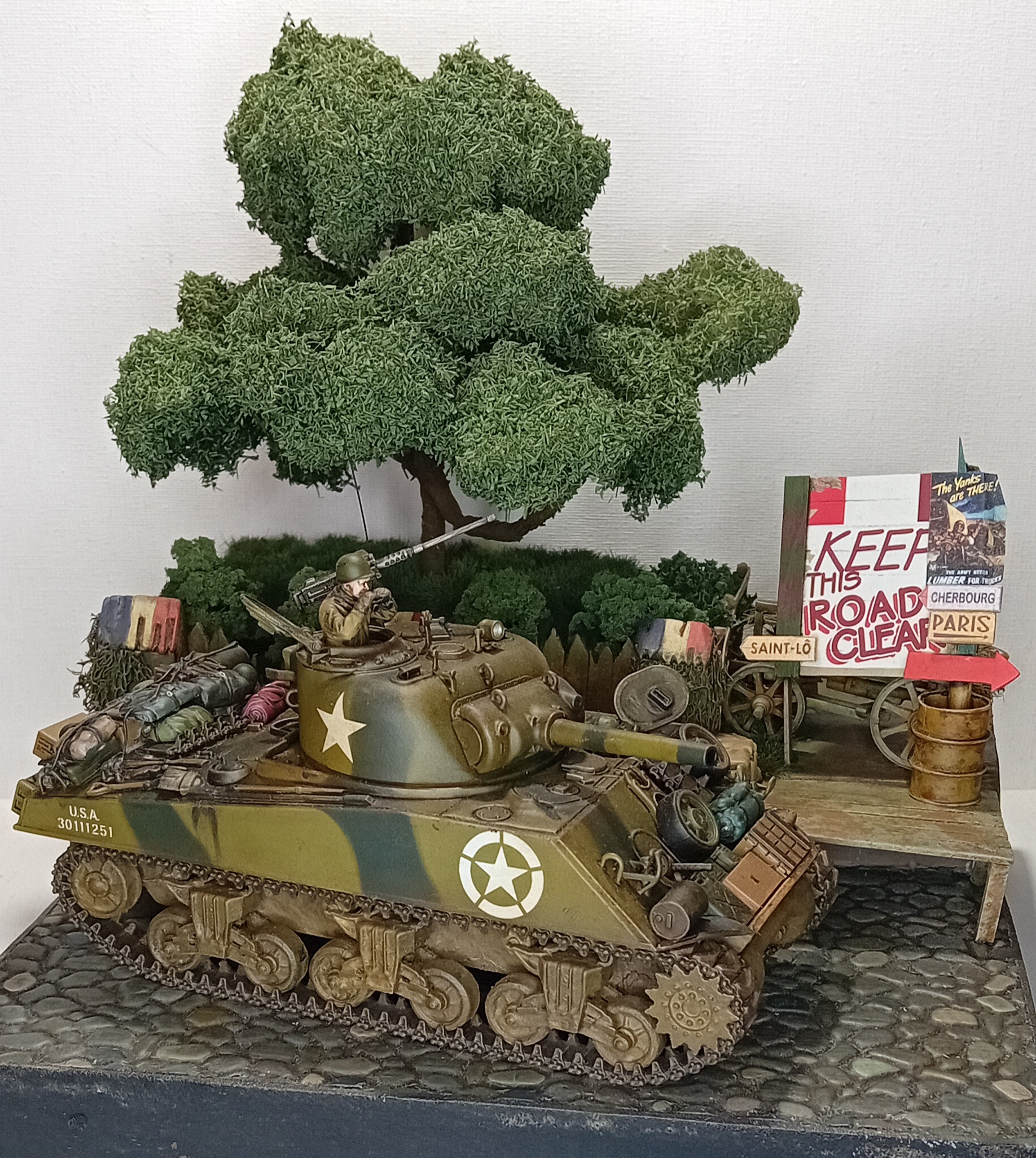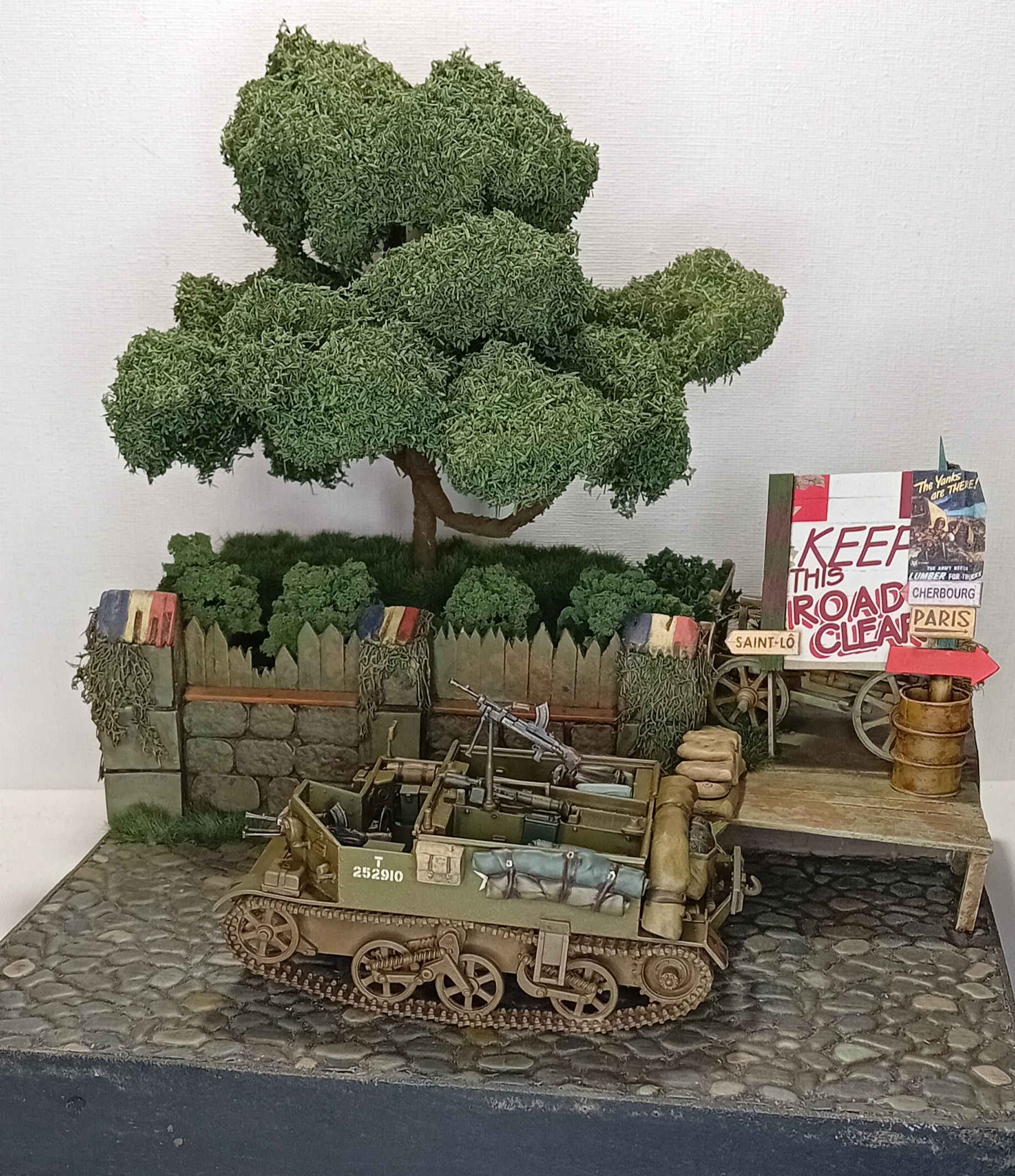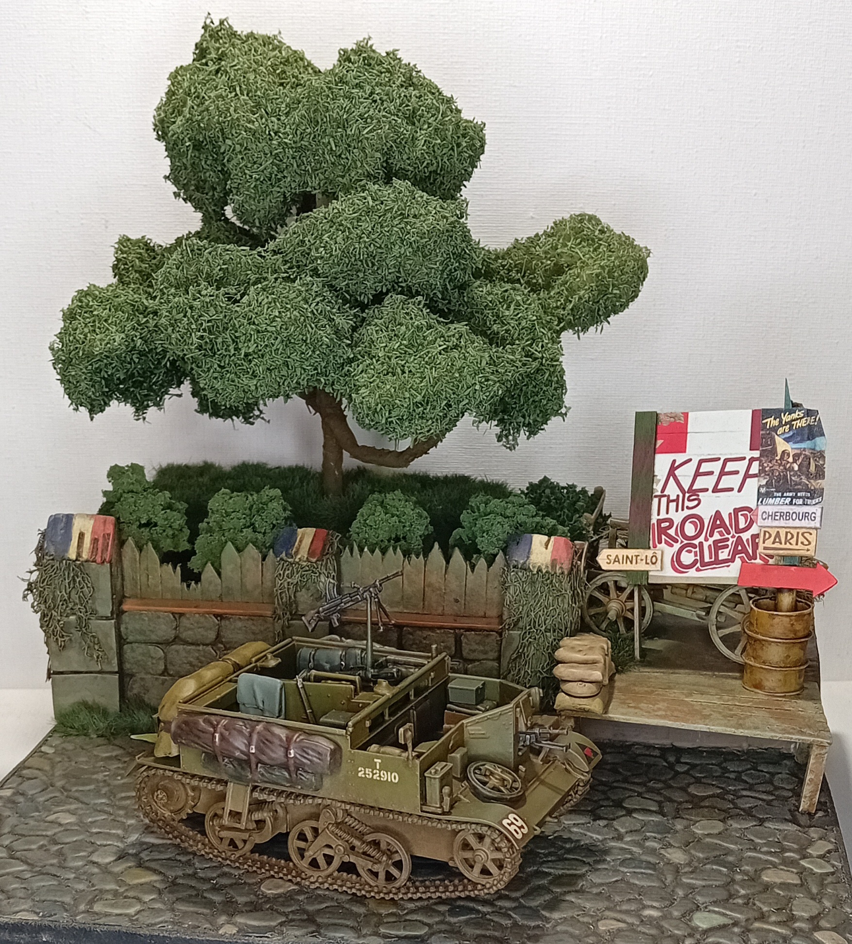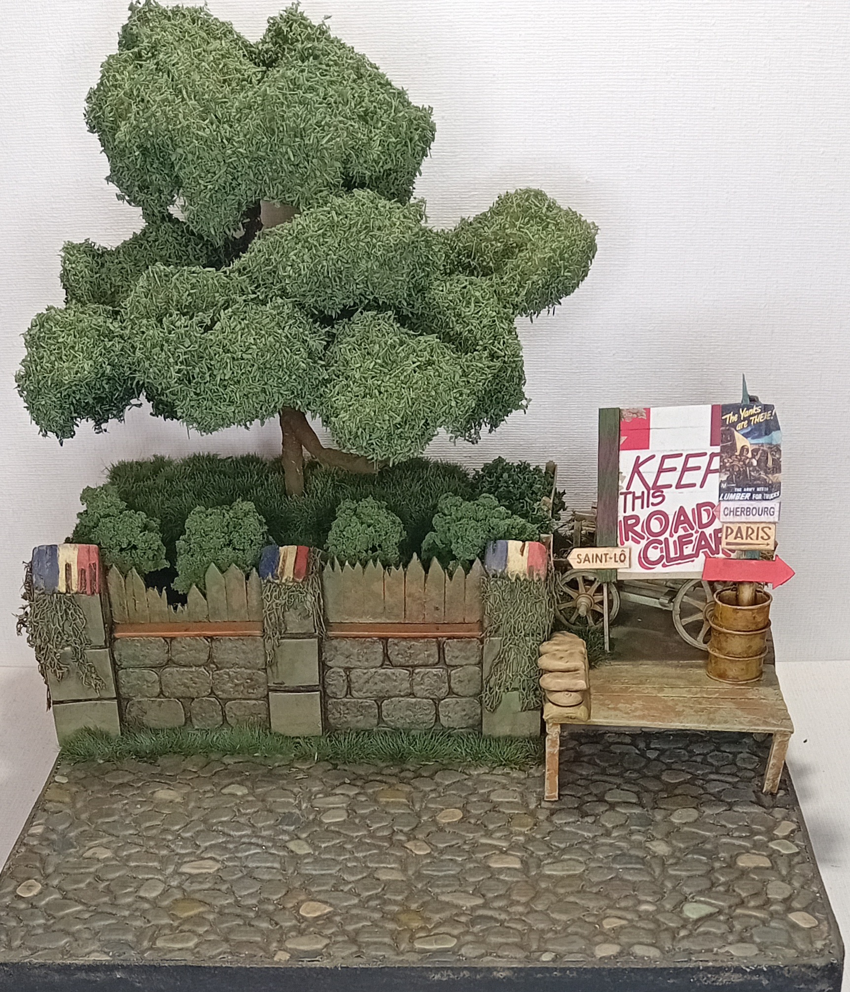 Продолжаю работу над французской диорамой под рабочим названием red BOOM express. Немного сменил концепцию и решил заменить шерман на американский грузовик, который в рамках поставок red ball express везёт топливо на передовую в августе-сентябре 1944 г. В этот раз добавил дополнительные элементы, вносящие баланс в общую структурную композицию. Это деревянный стенд с плакатом, напоминающий, что дорога для грузовиков ред бол экспресс должна оставаться свободной и старую повозку с сеном позади него. По задумке диорамы именно за этими импровезированной баррикадой будет располагаться засада немцев (а американская военная полиция сопровождения будет щелкать ебалом. Немцев ещё жду, когда приедут покажу, как они будут располагаться.