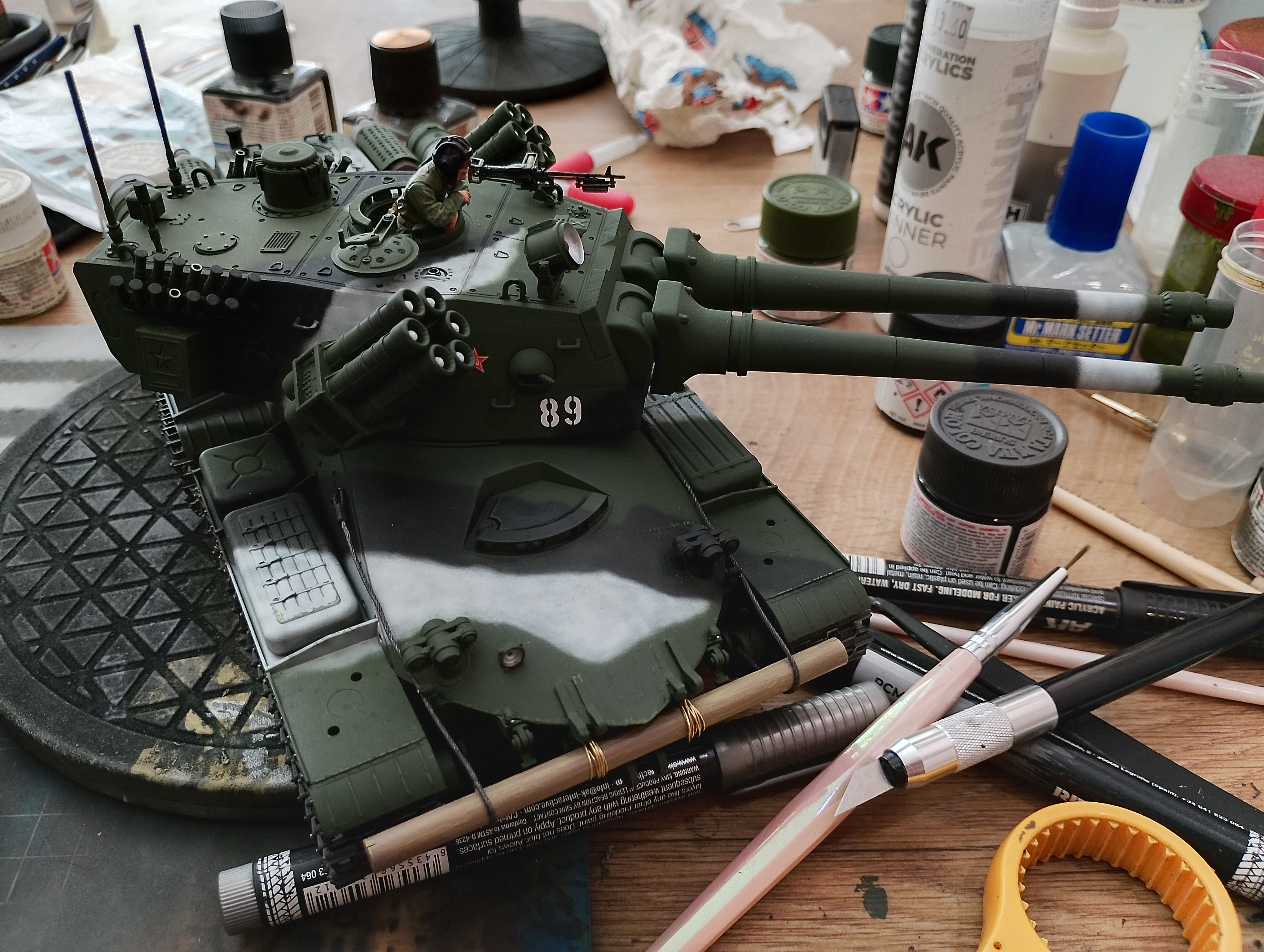 >>786069 Клей звезда такой же как тамия, но без кисточки, подойдёт самая дешёвая синтетика на один танк хватит как раз. Грунтовка тамия нахуй не нужна, покупай кудо в любом автомагазине(не эмаль, не алкид, а именно акриловый грунт). На красках лучше не экономить, но раз ты собрался красить кистями, то бери водный акрил валехо/пацифик/джимскейл. Японские краски под аэрограф и к ним либо спирт докупать, либо родные тиннеры, которые стоят прилично.