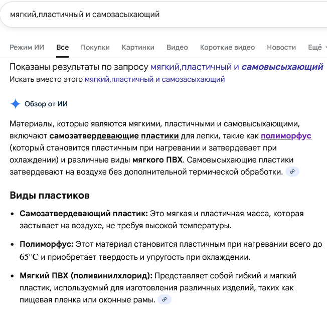 Даж не знаю, есть ли смысл писать в треде с такой активностью, но в закрепе тож не так чтоб людно по сабжу. Лепил самозастывайкой, с которой больше срезал ножиком для детализации, чем лепил, потому что она как зефир форму держит, пока не застынет. Решил ради прикола попробовать ск. пластилин, взял на вб гамму мягкий - охренел, насколько он удобнее в плане лепки, стало получаться все лучше и быстрее. но самозастывайка прекрасна тем, что из нее получается чуть ли не керамика по твердости в итоге, а пластилин остается пластилином. теперь понятно, почему полимерка популярна, т.к. объединяет походу плюсы обоих материалов, но я ей никогда не пользовался, у меня нет духовки и вообще я на ней разорюсь, потому что довольно крупное лепить планирую. короч, че делать, чтоб получать гипс в итоге? первая мысль - брать пластилин и заливать силиконом, но пишут в отзывах, что пластилин и силикон плохо совместимы - типа пластилин не дает застывать силикону в месте прилегания. да и не для всего силикон годится, мне не барельфы а именно 3д статуэтки животных надо (хочу специализироваться именно на котах, есть куча идей для продакшена).