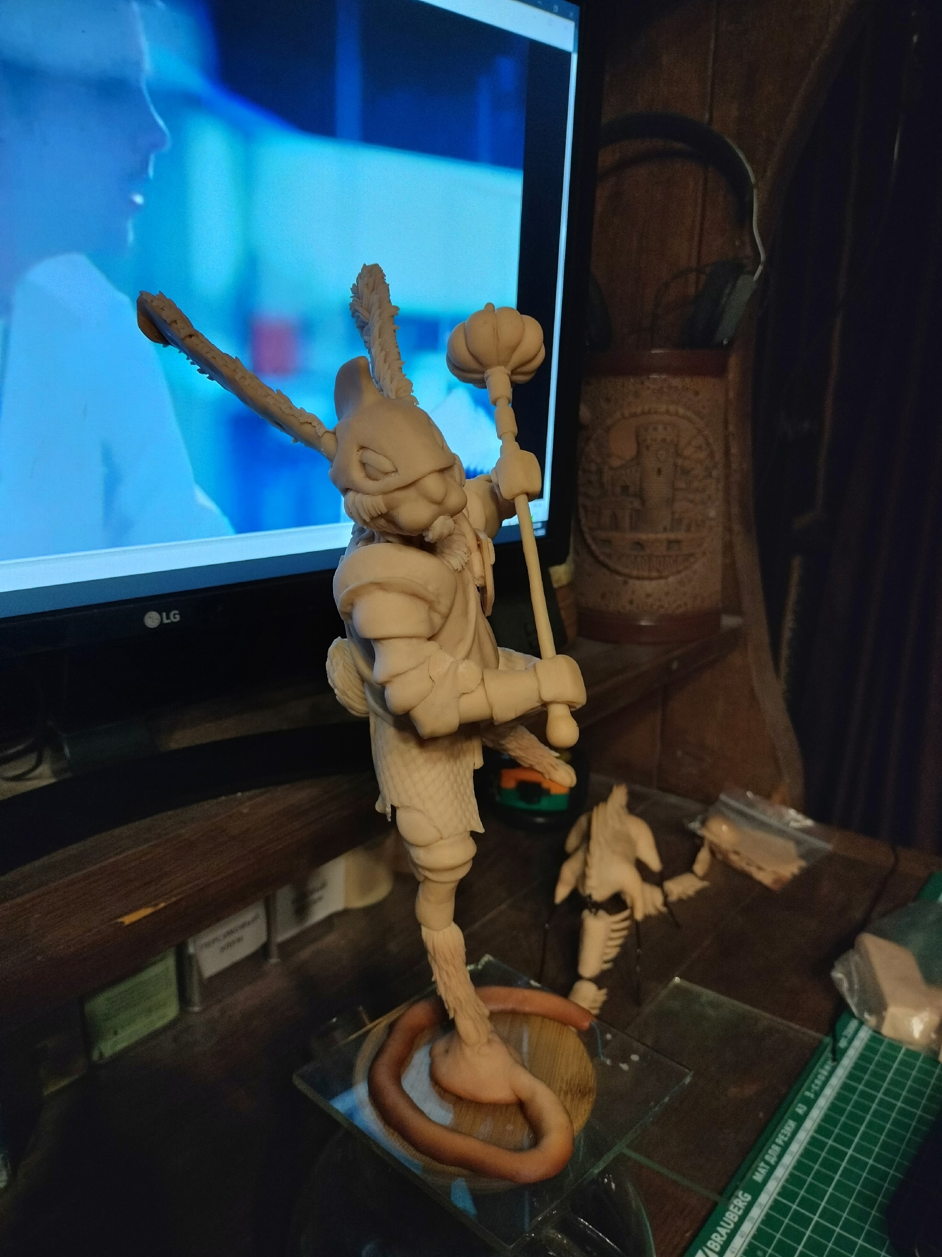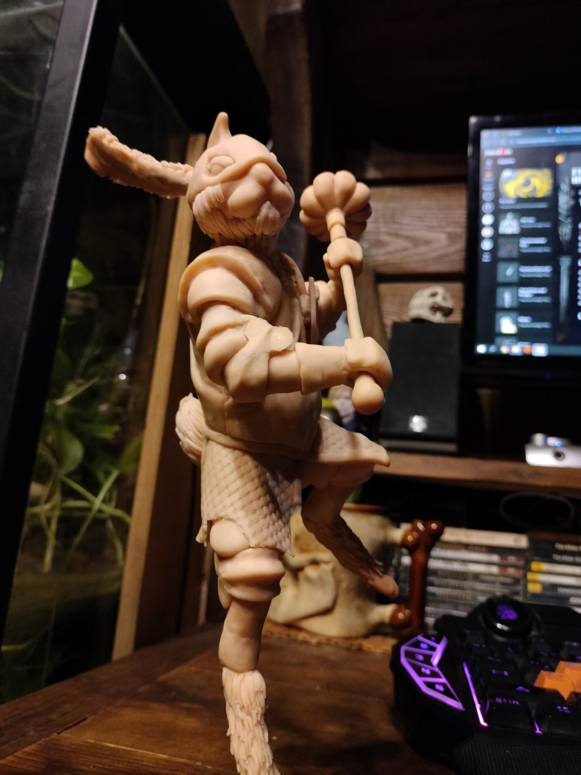Рейт, аноны. Я заебался и очередной раз вспомнил, почему не люблю лепить. В общей сложности наверное 10 вечеров ушло. Надо всё же как-то учиться в процессе этот ебучий мех делать, потому что после запекания полимерка к полимерке мелкими кусками не липнет нормально. Так же сэр Кроллингтон из-за размера заработал трещину ноги в духовке и пару раз ёбнулся из-за разъехавшейся проволочной подставки.