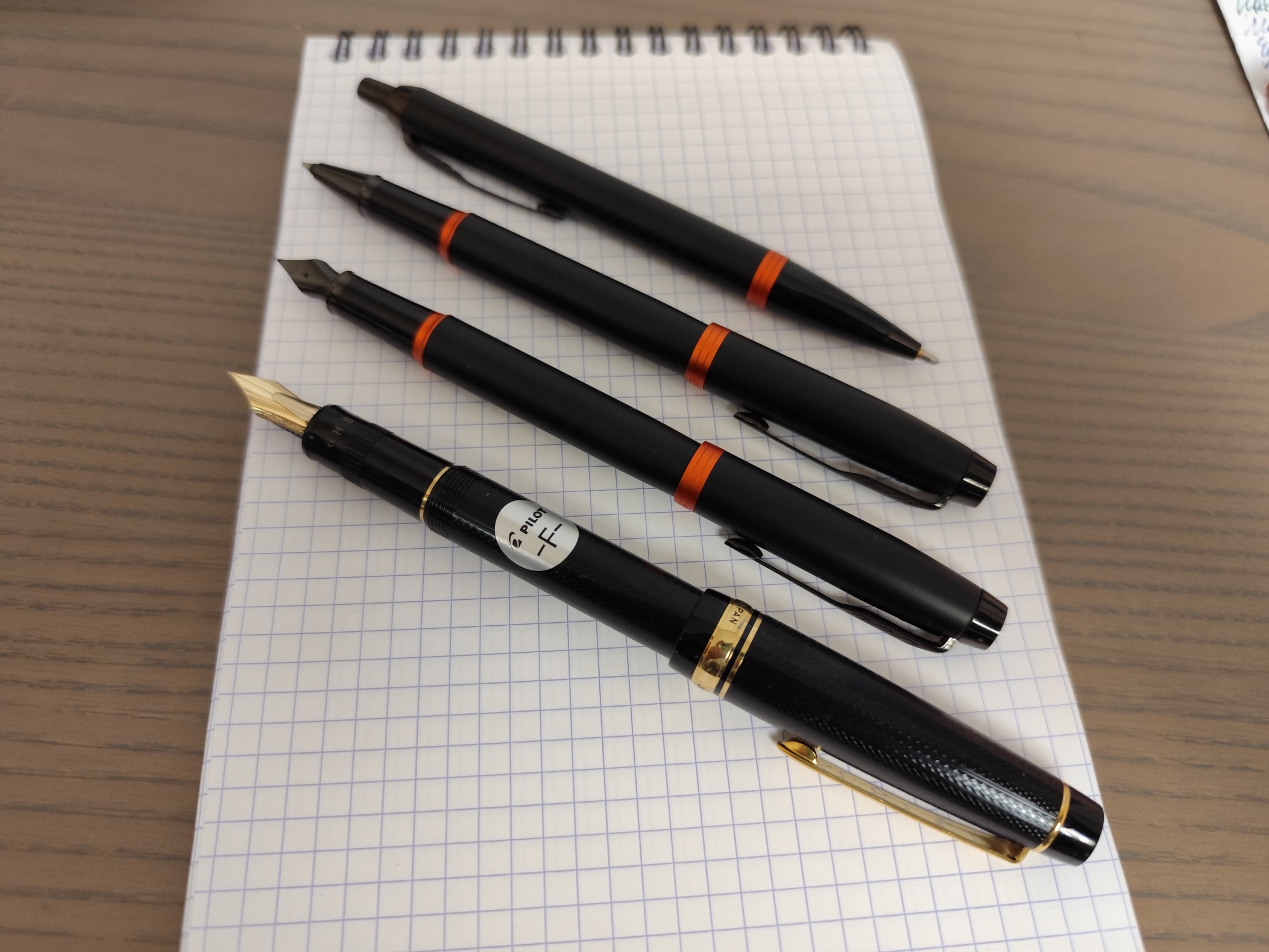 Из того что не нравится: Всякие прикольные перья (Sx, FM-BM, MS, BB, C) только на чёрных с золотом моделях. Хочешь красненькую или синенькую или прозрачную - на те EF/F/M/B и всё Колпачёк на резьбе лень откручивать, но я привык