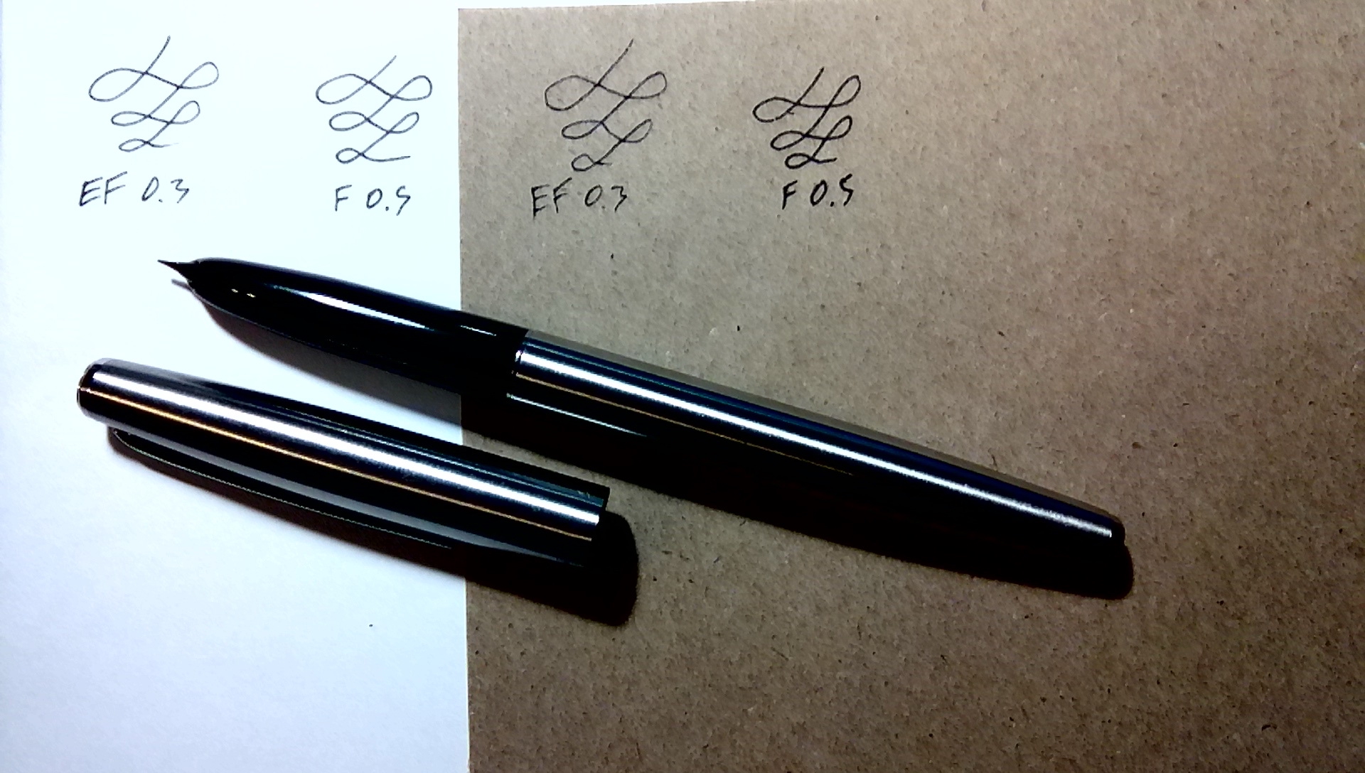 >>798864 Пришло, попробовал. Корпус пакайфу. Касаемо пера - бля, ну не смешно даже. По состоянию из коробки бумагу дерёт нереально, как рубанком. Угадайте, где на пике Малевич, а где PenBBS с теми же комплектными чернилами от первого. Но радует, что самая тонкая линия обратной стороной мельче аналогичной линии у EF малевич. Нормальной же стороной некоторый контроль толщины присутствует, но на привыкание в соотношению угол-нажим-скорость уйдёт время.