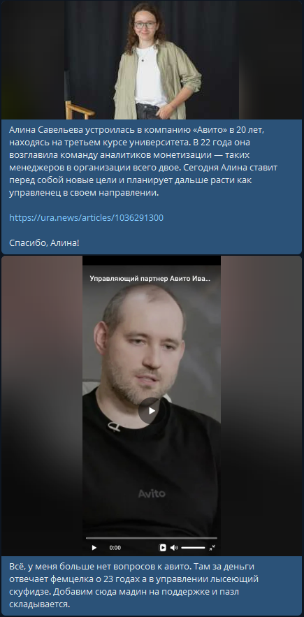 >>805675 >Почему авите пиздец? Ей не будет пиздец ровно до того, как кто-нибудь из больших компаний не выкатит достойную альтернативу. Пока авита - монополист в сфере продажи всякой нищей хуйни. У них есть достойные конкуренты в сфере поиска рабты (хх), недвиги (циан), авто (авто.ру, дром и т.д.), но для всего остального приходится пиздовать на авито. И в ближайшее время ничего не поменяется. Сервис может и будет дохлым и уёбищным, как vk, но пользоваться сквозь боль им будут все, в том числе мы с тобой.