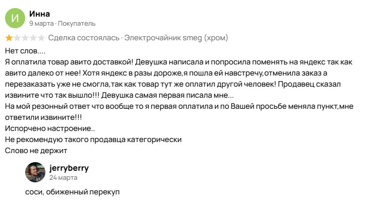 Почему авите пиздец? Так вот же - на самых популярных отзовиках рейтинг ~2 звезды, и это при том, что хуесосы стараются повысить свой престиж, въебывают деньги в рекламу. Что получаем? Отток старых недовольных пользователей, а новых - хуй. Конечно, есть всегда маленький процент доходяг, которым обязательно нужно попробовать говно, чтобы убедиться. Но на говноедах далеко не уедешь. Института деловой репутации в рахе вроде бы и нет, но эта сука работает. Сами себя выебали, красавчики