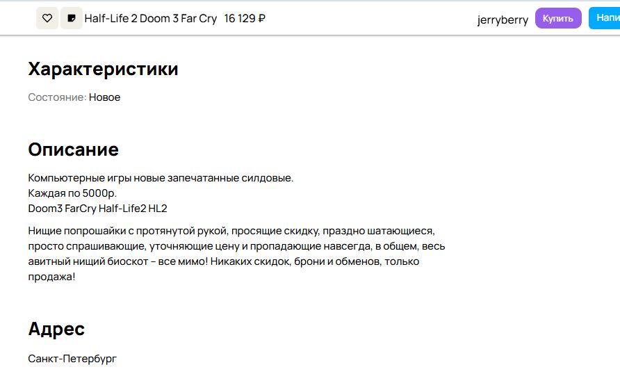 Никто не просил. Сейчас чел повысит цену на пердолу и её ожидаемо никто не купит. А у чела купят. У него на втором его аккаунте они по вменяемым ценам.