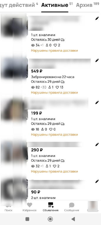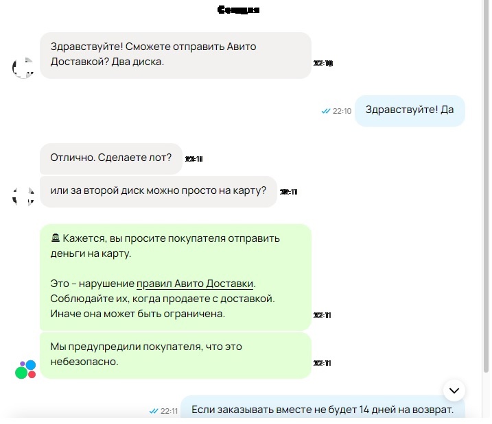 Алсо, может ли быть такой момент, что такое предупреждение выскакивает, когда в объявлении доставка включена, но если её выключить на время общения, то предупреждений не будет? Потому что у меня она выключена всегда вообще. И пока этих предупреждений не было и включается она уже по факту оплаты.
