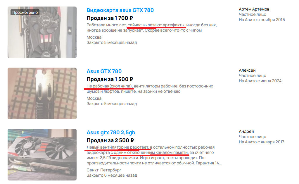 >>805329 >Выставил на Авито за 3500 Лол, так ты сам себе лох. Я нерабочую, там полный труп (с отвалом чипа) за 7к продал (купил у подобного лошка за 3к и перепродал буквально на следующий день). Как правильно тебе написал перекуп из скринов >>805346 - родные чипы быстро умирают.