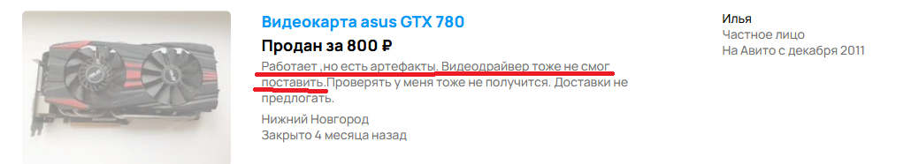 >>805334 Что не так? Нахуя мне продавать за 3, когда готовы купить в два раза дороже? Я отменю заказ просто и всё. >>805335 Ну ладно,с новой я загнул, имел ввиду рабочую в хорошем состоянии.