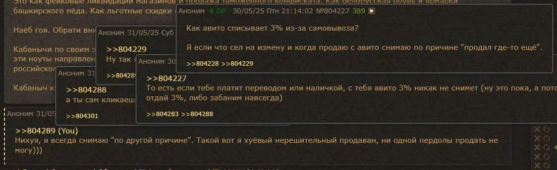 Месяц когда авито начало ебку, там комса, комса в стоимости отправления, потрать денег или твое объявление улетит вниз. Итого куммулятивно на круг процентов 20 комиссий и убийство всех недорогих лотов. Все же интересно, чейто они решили так оперативно самоуничтожится? Обычно такие штуки вводят постепенно, ступенчато, растягивают во времени а тут прям бах! И все сразу.