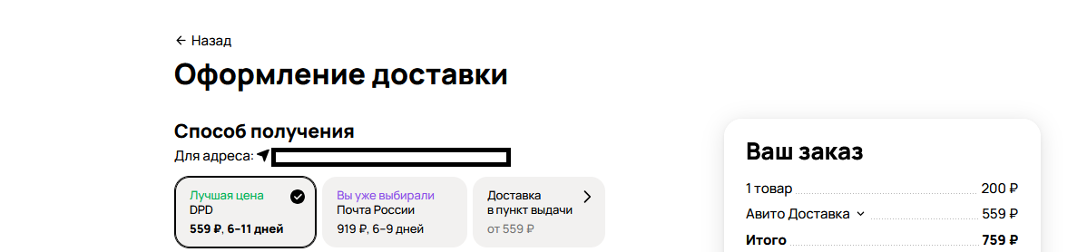 > - отправлять заказы иными способами, не предусмотренными в интерфейсе Авито, в целях избегания оплаты услуг Авито Доставки;
