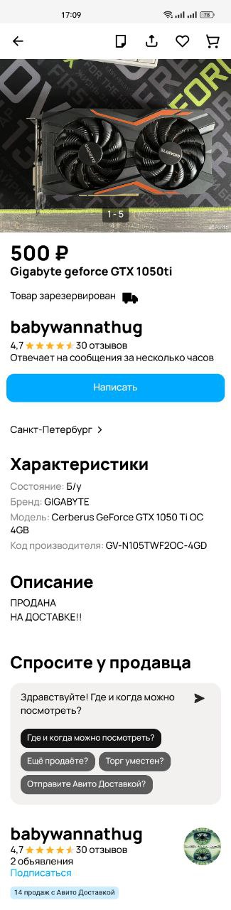 На меня снизошло чудо, написал адекват с большой историей продаж, без вопросов скинул предоплату и оформил заказ. Наконец-то этот пиздец закончился. Хуй он пропадет теперь, 100% заберет заказ, иначе прощай деньги.