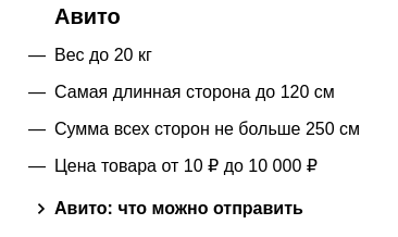 > - использовать преимущества Авито Доставки для целей, не связанных с совершением сделок с Авито Доставкой.