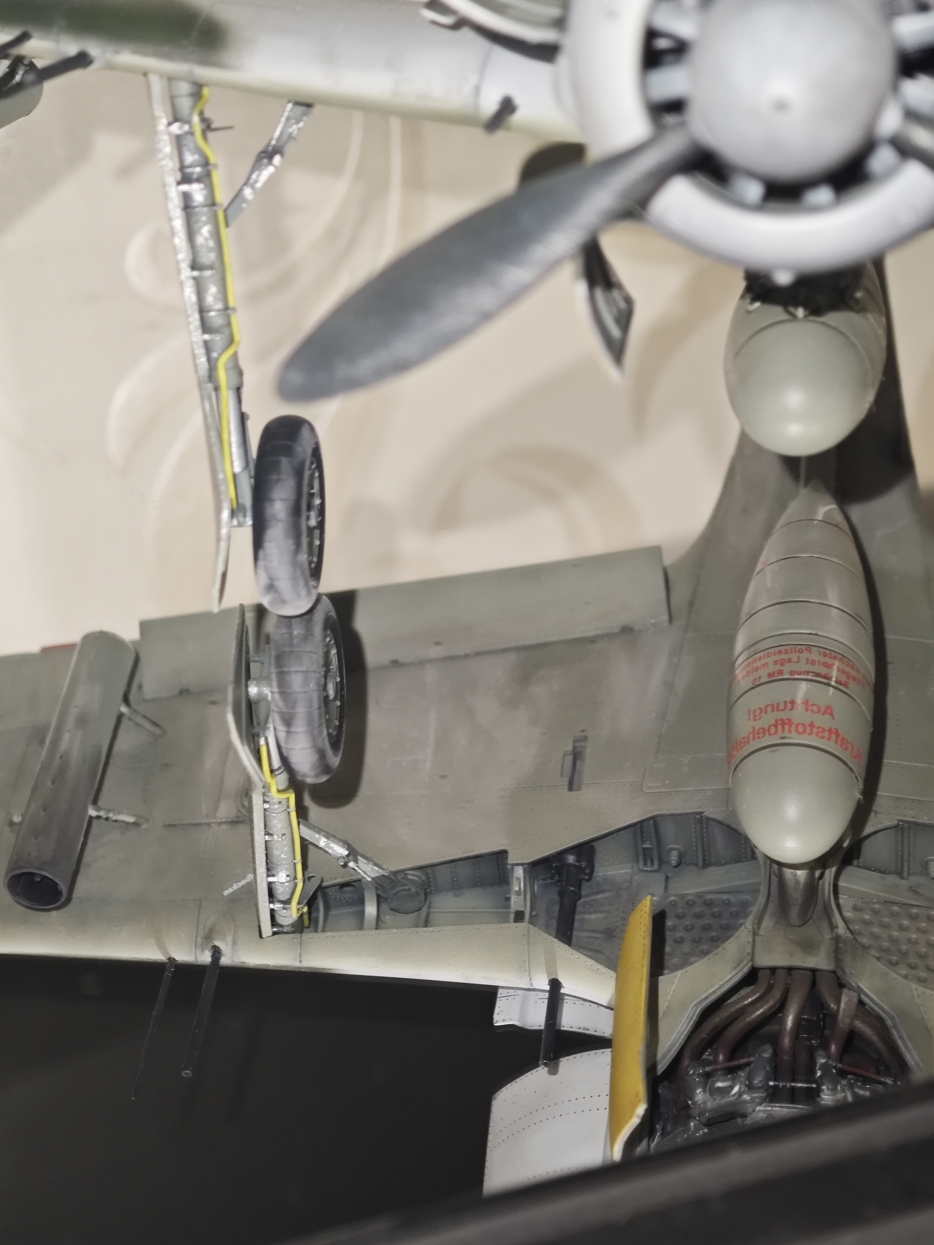 что-то тред совсем омертвел по сравнению с зимой. разбавлю своей третьей моделькой. покрас испорчен, зато я узнал, что на шагренистой поверхности делать масляные точки и смывку занятие не очень разумное, так как излишки убрать потом очень сложно. удивился, как смог сделать аккуратно антенны из тонкой лески, изоляторы делал пытаясь накрутить с палочки каплю суперклея, было неудобно. потом прочитал, что лучше попробовать клей пва. фонарь кабины окунал в футуры, давал просохнуть сутки и снова окунул. стал чище, но я пго испортил серой шпаклёвкой от тамии. мне пришдо в голову приложить фонарь, а неровности между ним и фюзеляжем закрыть шпаклёвкой, я подумал водой смою с фонаря, но не тут то было. в принципе прогресс какой никакой есть. КСТАТИ. палочку, нижняя половина которой деревяннная dunkelgelb от джим скейла я приклеил на супер клей. и никаких помутнений от него. да что скрывать, я фонарь в двух местах вообще на него приклеил, так как его пришлось сжать по бокам. похоже реально футура даёт защиту от помутнений от цианокрилата. но может я был настолько аккуратен.. снизу слишком большой нагар получился что-то, это большой минус для меня. ну и к вакуумным моделям я больше не прикоснусь. сейчас начал звездовский pz4h 1/72, хоть и есть проблемы со стыкуемостью небольшие, всё равно намного приятнее, чем точить каждую деталь и подгонять друг к другу. а ну и я испортил две декали, на этом номере M8CP должна быть акулья морда, но я их испортил в силу чуть неправильных размеров видимо фюзеляжа, так что пришлось заюзать пчелу. а декаль настолько качественная, что когда я её снимал с подложки, почти весь цвет остался на ней, и вместе жёлтого получился бледноватый. металлические детали не подкрашивал, так как это "фишечка" модели. в конце скажу, что впервые начал что-то делать из литников. тут это: нижняя кольцеобразная антенна накрутил гретый тонкий литник на кисточку, а кольцо сделал, расплавив клеем концы, антенна с конусом на конце, треугольничек возле колеса, палочка на фонаре кабины, пулемёты, трубка пито, которую я 3 раза ломал в силу неаккуратности
