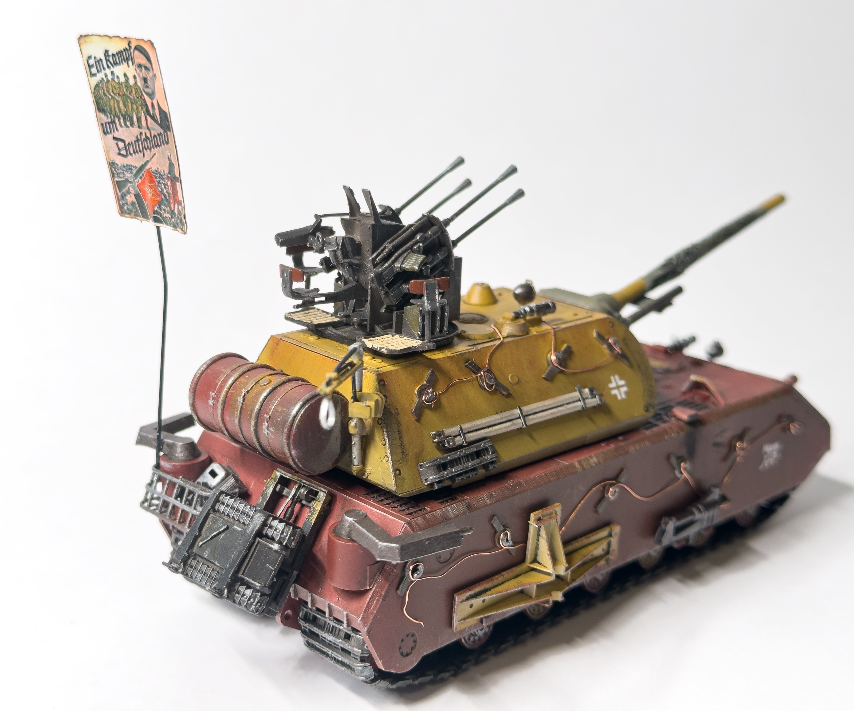 хорошо что последняя моделька получилась самой насыщенной на детали + в маленьком масштабе. мавус 1/72 от пизды с мет. стволом и обвесом срамоты моделс. плакаты зип макета. 2 тонких слоя футуры и цвет у них стал насыщеннее. края подпалил паяльником