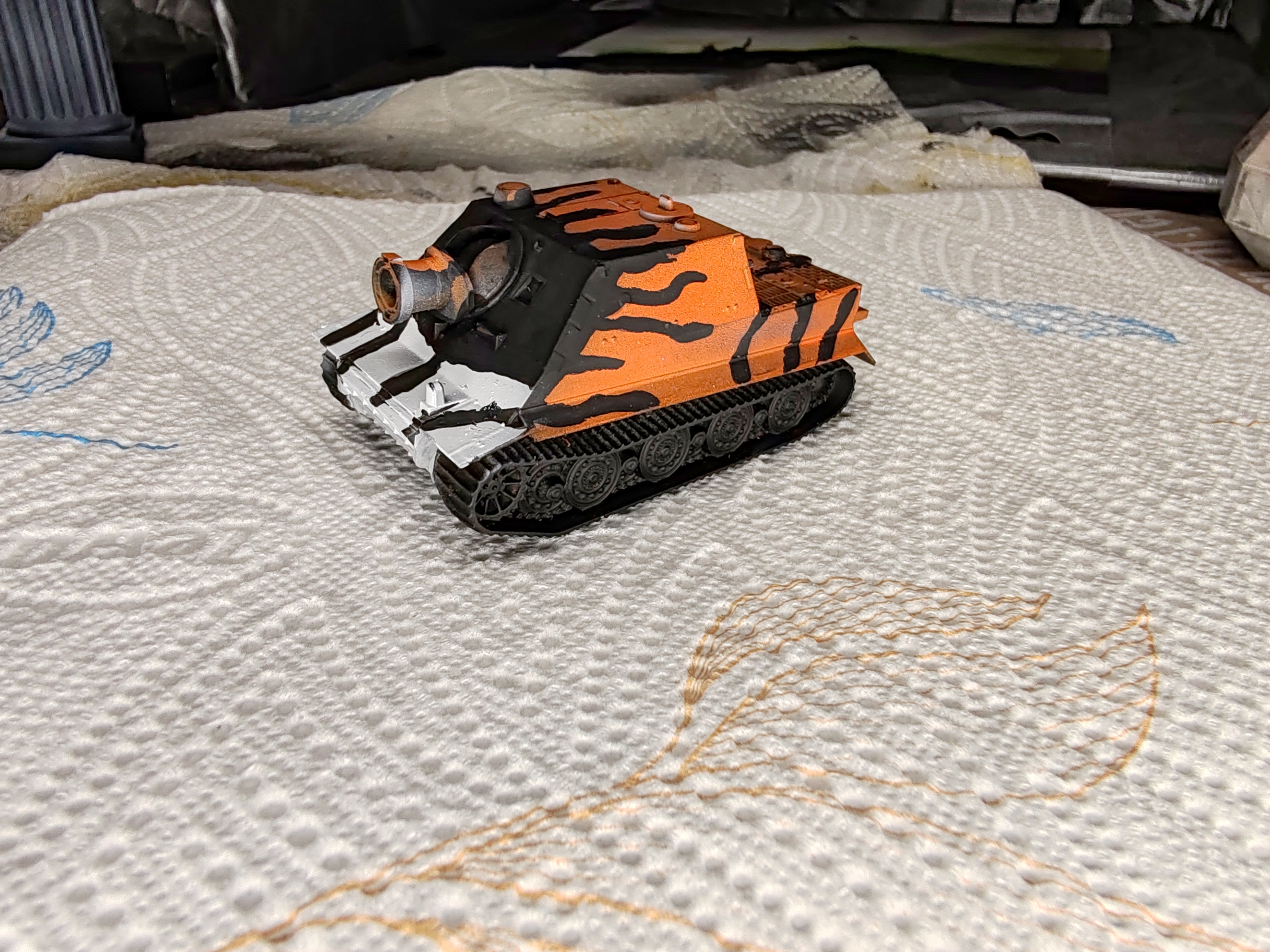 да они офигели. в картинках к обвесу мауса сама 3д модель из игры. а по факту в реальности нет тряпок, троса, гусениц. да и детализация голиафа хуже, чем на картинках у них. и это ещё надо снимать всё с форм 3д печати, попутно я сломал несколько деталей, но на суперклей приклеил. хорошо что я на лохито взял набор с маусом звездовским 1/72, мет стволы и сам обвес.1к за всё. а тут 2к платить за эту хрень конечно развод