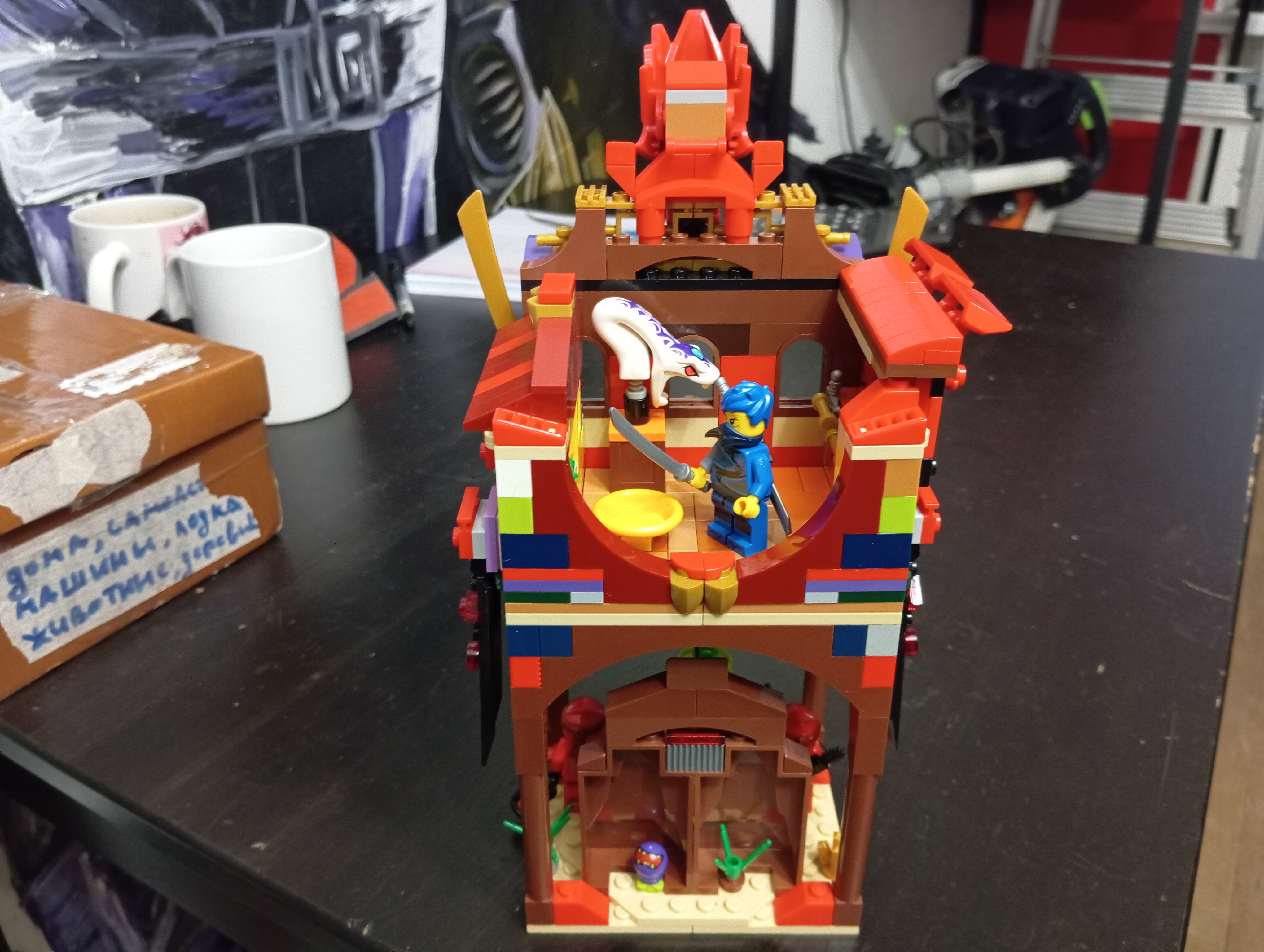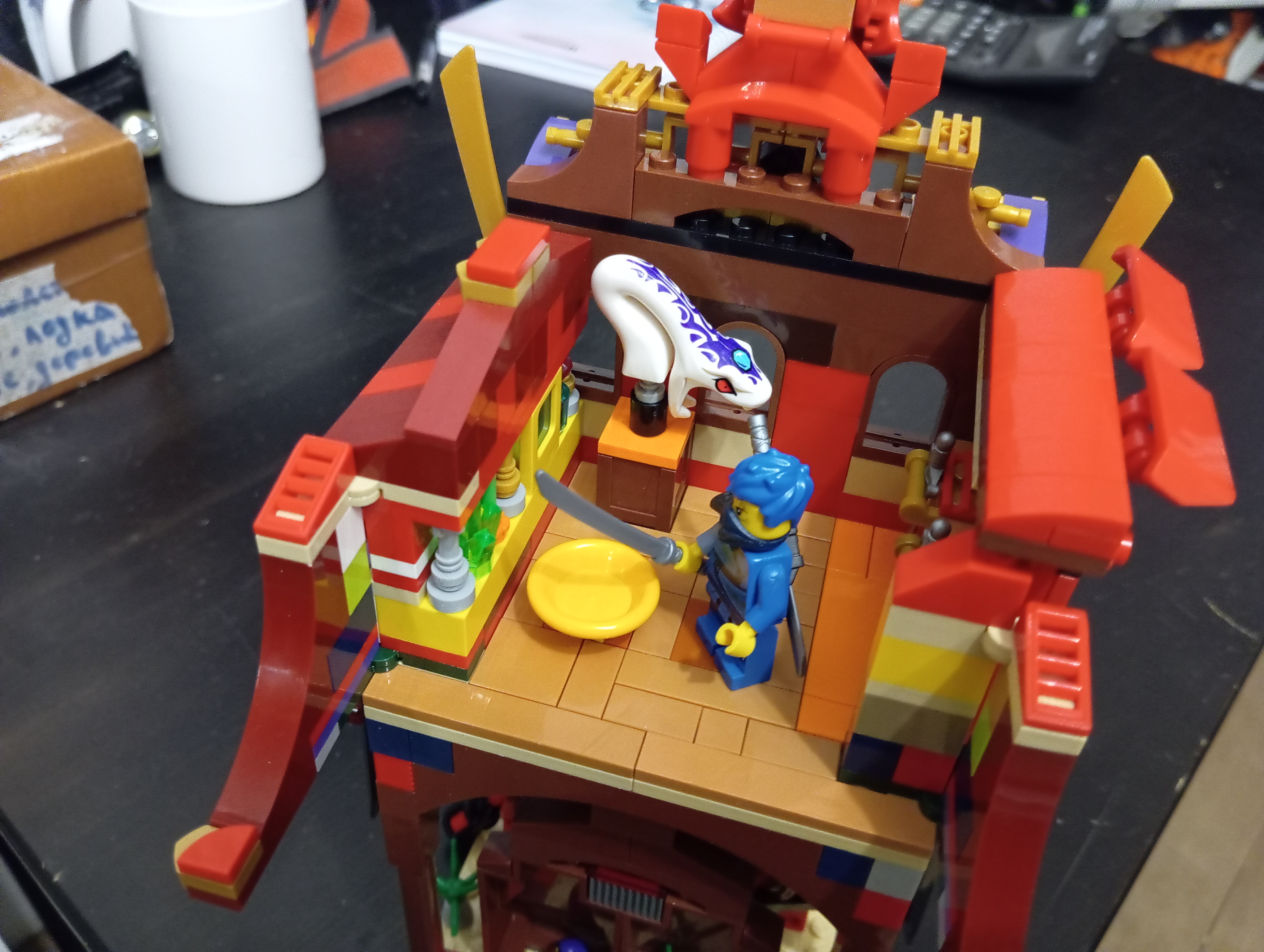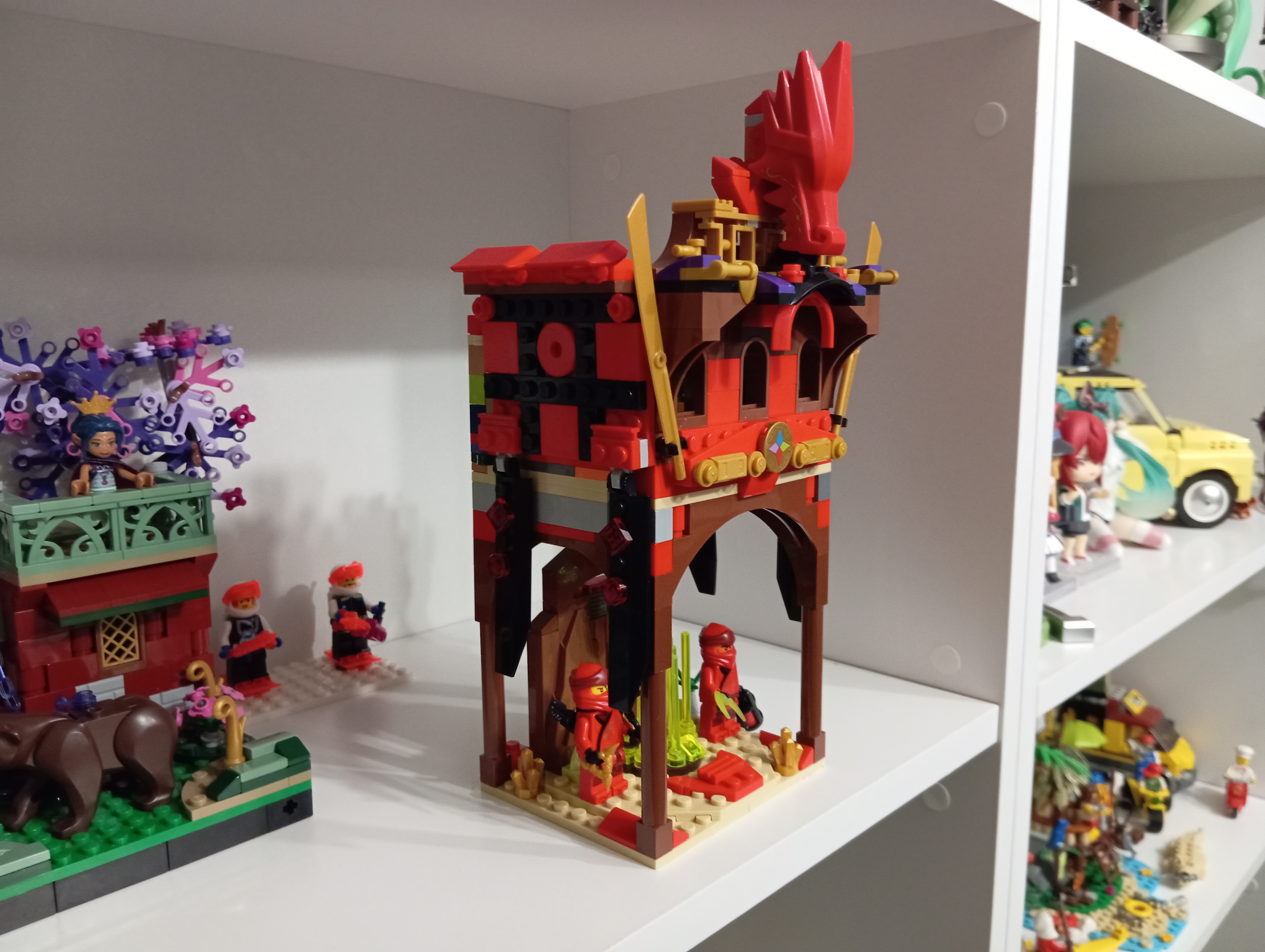 Чето сегодня не спалось. Пошерудил в ящике с россыпями с авито. Там было чуть чуть Ниндзяго. Никогда в эту серию не углублялся. Но так как чето собрать хотелось , сделал такой "храм красного дракона над источником силы"