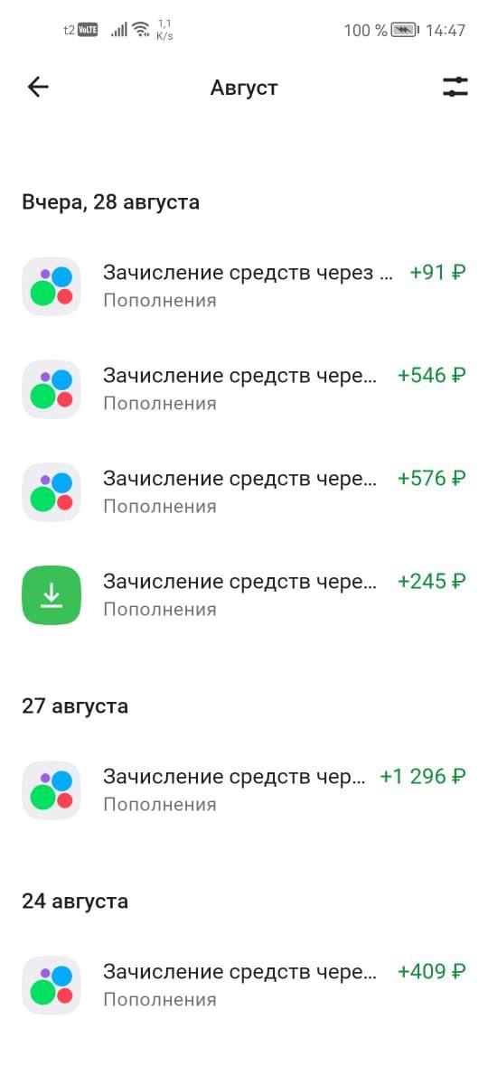 Август выдался неплохим, поступления почти каждый день приходят. Суммы небольшие, зато стабильно.