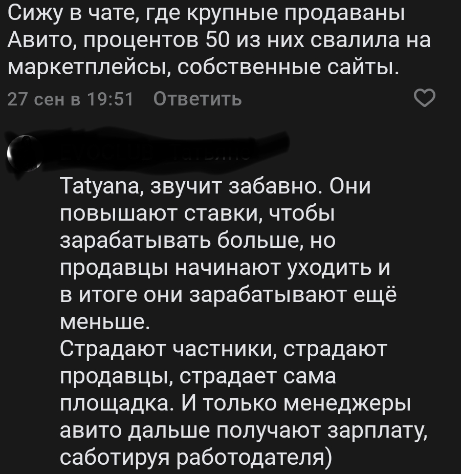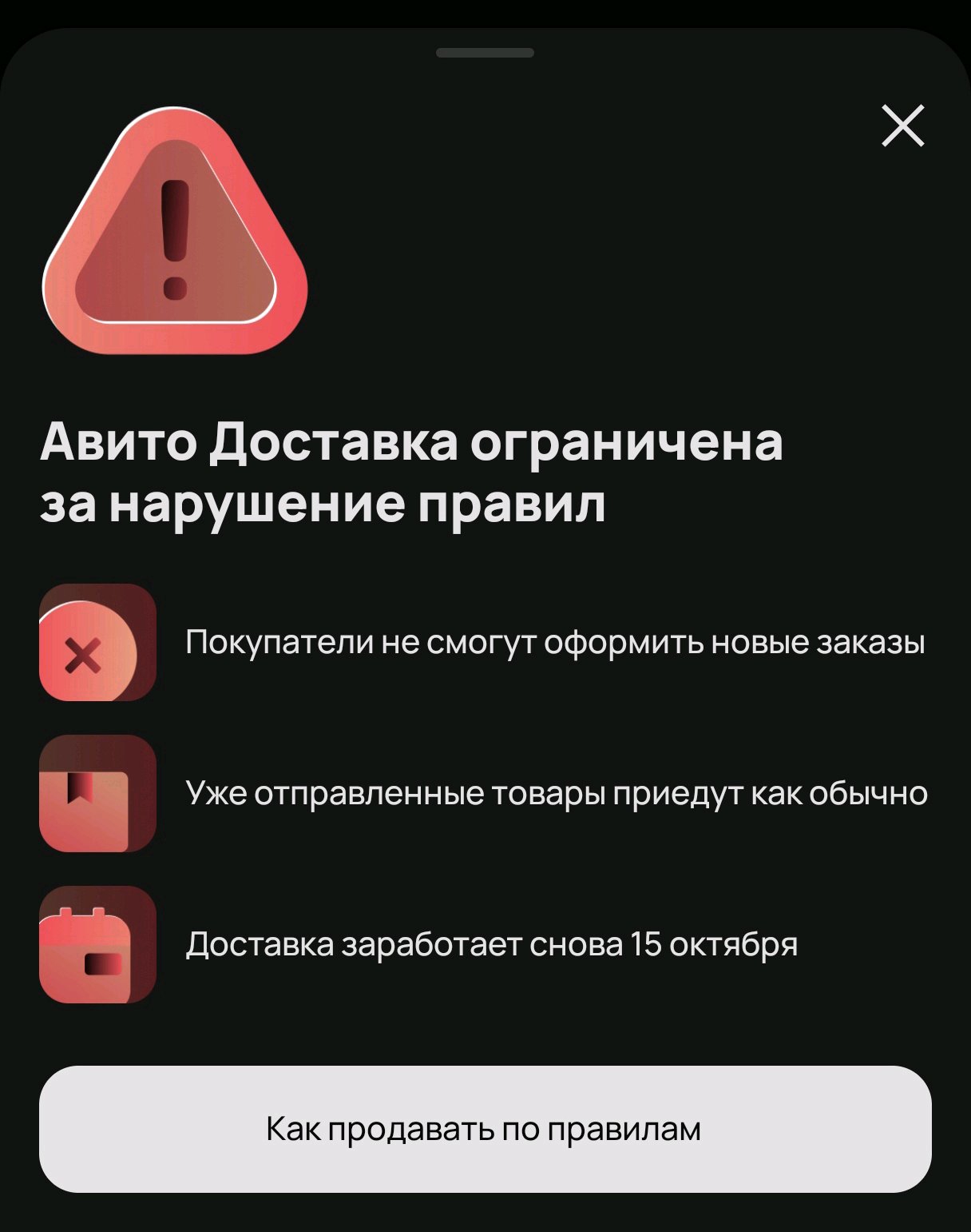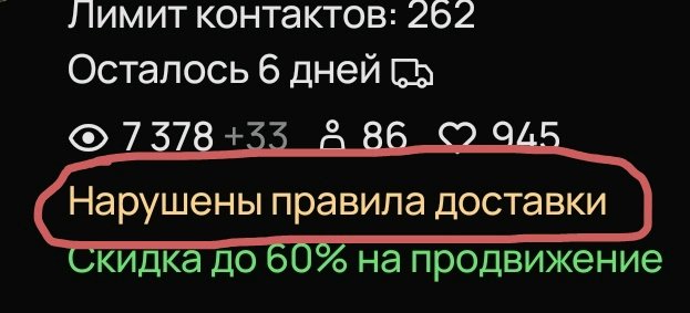 >>815273 Да, весь профиль затрагивает, ограничения только в Авито-Доставке, ну то есть она тупо отключена. Ну и естественно это приводит к просадке по просмотрам и контактам. Только сука просмотры начали снова расти, опять твари палки в колёса вставили. Буду через изображения всё писать, хули остаётся, хотя со стороны реально выглядит как скам, поэтому люди ссутся переводы из-за этого делать