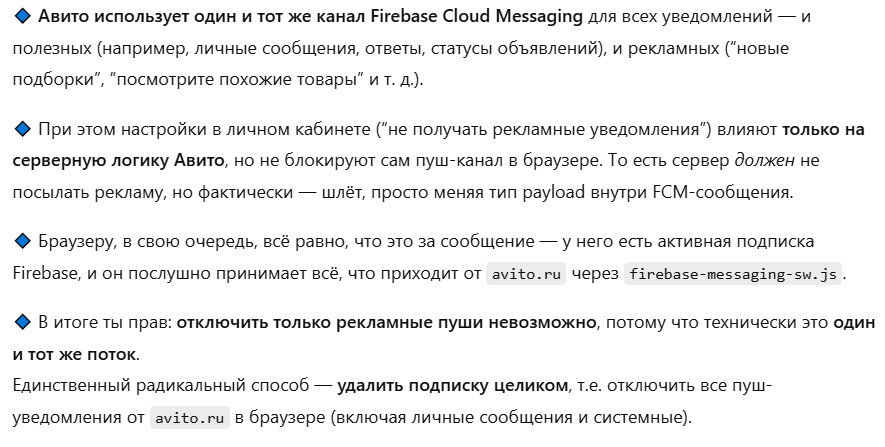 Бля, уже неделю раз в сутки валятся помойные рекламные пуши – в аккаунте, конечно, всё отключено и года полтора такой хуйни не было. Ловил-ловил источник и причину, пас chrome://serviceworker-internals и не выяснил ничего, кроме того, что они идут по легитимному каналу пушей в обход на запрет отправки спама. У кого-нибудь ещё наблюдается такая ебатория?