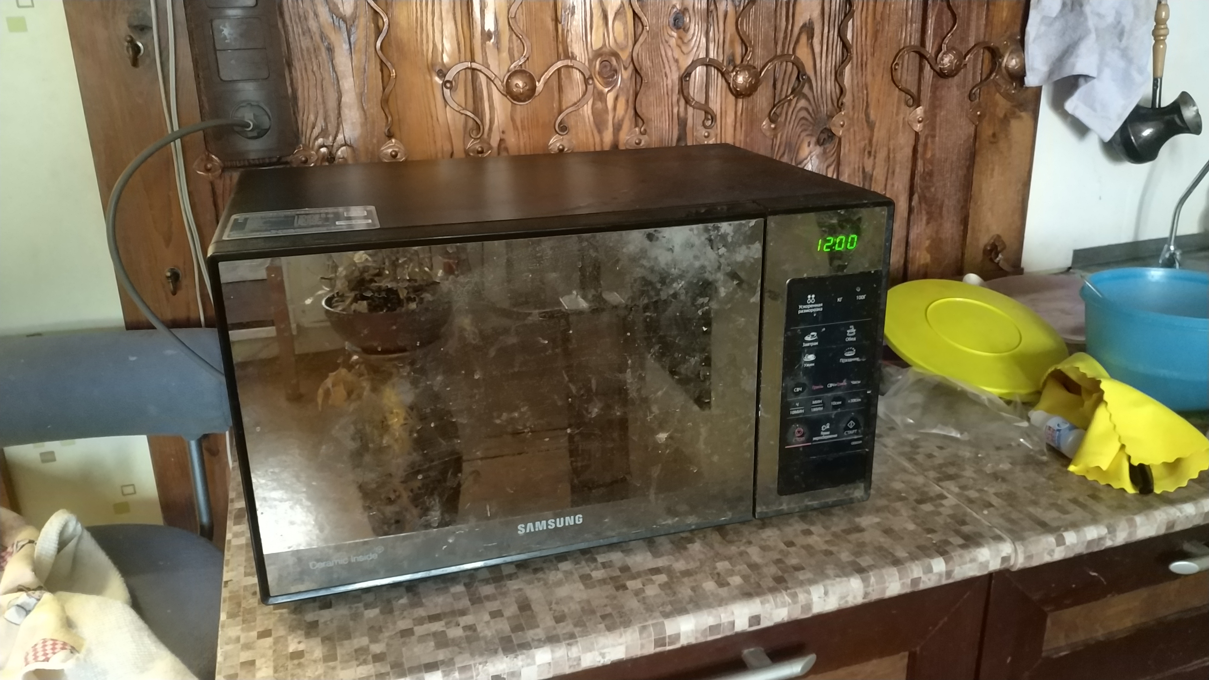была найдена сегодня утром слева от двери в падик(помойка у падика а для кого-то и на нём) ТИПА рабочая но глючит сенсорная панель и нет тарелки стекляной внутри.