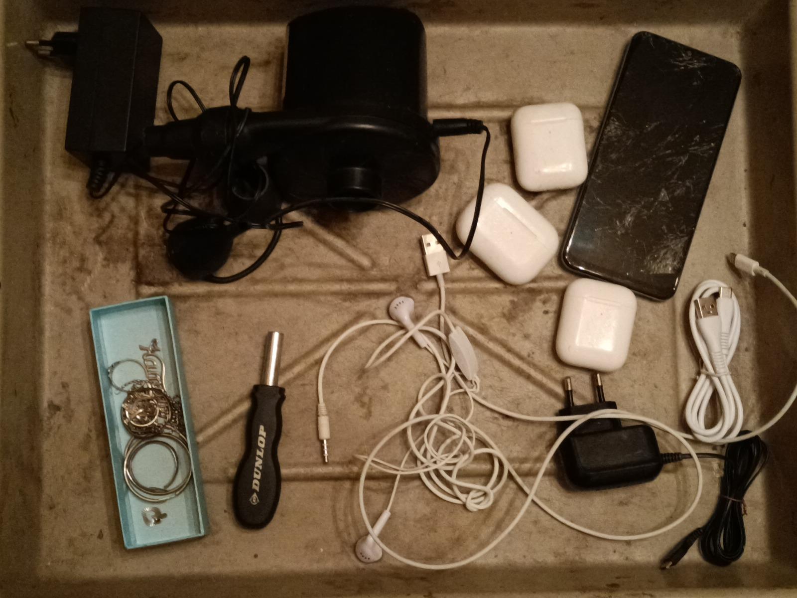 Вот ваще моего ничего. Только толстовка женская попалась и пылесос - нажал кнопку и щётка закрутилась, подсветка загорелась.., но он мне нахой не нужон. Скрутил с ящика две ручки, чтобы совсем голяком не ходить.