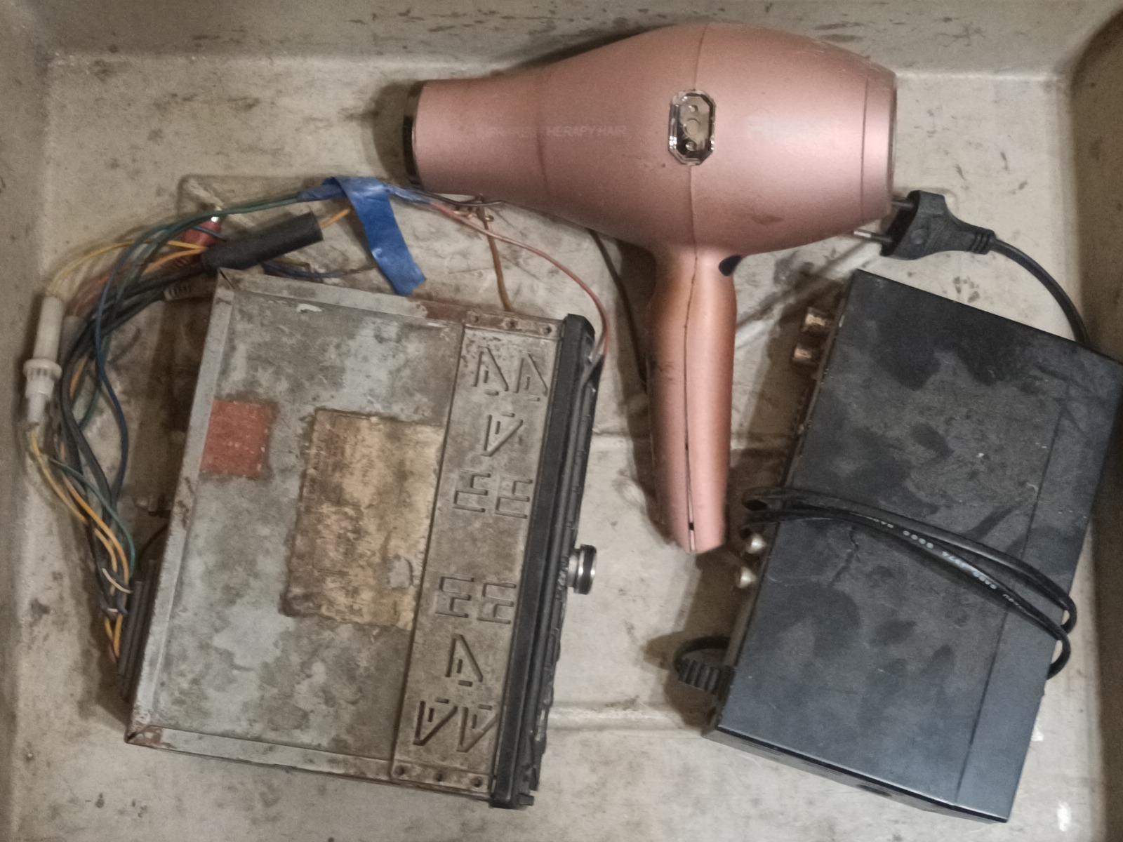 Ноутбук на Атоме, три системника не комплект, три монитора, квадраты самсунг 15-17", три бесперебойника - два ок, один дрова, десяток принтеров и МФУ, штук пять-шесть роутеров, пара игр на ps4, кальян, мотошлем (без визора), микроволновка (исправная), гармонь, руль Logitech.