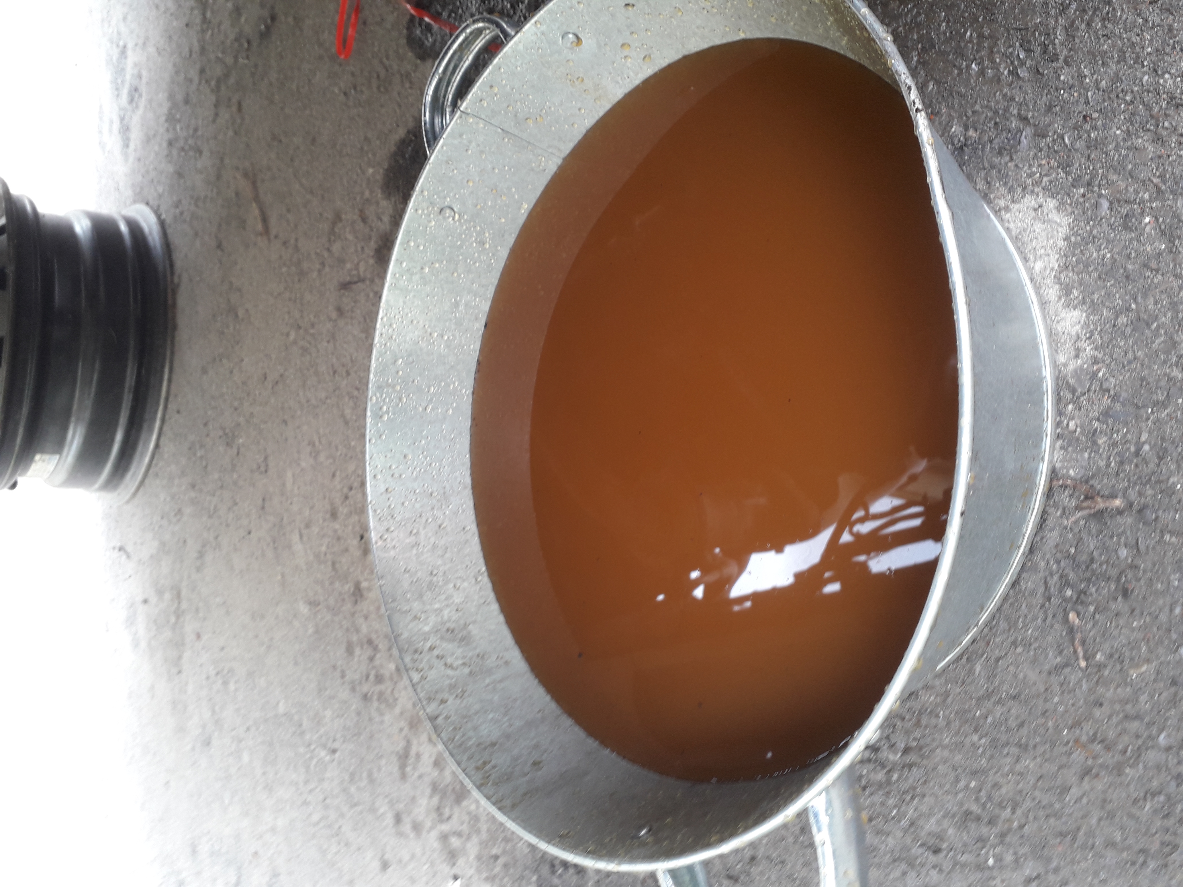 На фото - антифриз из системы охлаждения до окончания промывки.