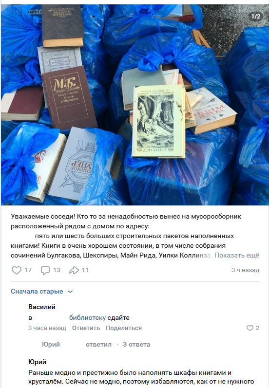 **Неочевидное:** * **Коробки и упаковка.** Хорошие картонные коробки (особенно от техники) можно дорого продать на Авито тем, кто переезжает. * **Кабели и провода.** Даже если они на вид старые, внутри может быть медь. Всегда берите, чтобы потом прозвонить. * **Винтажные и "колхозные" вещи.** Старые советские приборы, книги, значки, посуда. На них есть свой, часто очень платящий, покупатель. * **Стройматериалы.** Остатки ламината, плитки, обоев, краски. Люди, делающие мелкий ремонт, охотно их берут за полцены. * **Растения.** Иногда выкидывают комнатные цветы в горшках. Их можно реанимировать и оставить себе или продать. * **Не берите мягкие игрушки и матрасы.** Это рассадники клещей и пыли, и их почти невозможно сбыть.