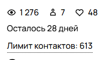 При активации объявления увидел новую хренотень - лимит на количество контактов. Ну авита, ну дельцы. Хорошо, что у меня специфический вид товаров, которых интересует 2,5 человека.
