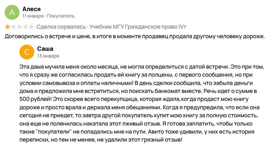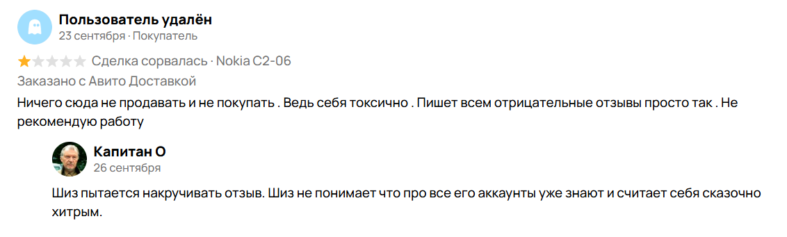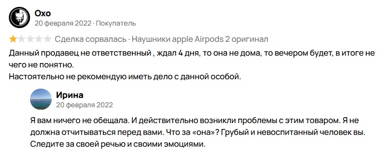 Это сразу признак шиза какого-то. Они нахуй идут. У них авита снижает социальный рейтинг, так ещё покупатель вправе влепить единицу.