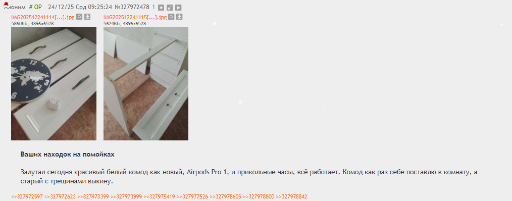 Неочевидное: * Коробки и упаковка. Хорошие картонные коробки (особенно от техники) можно дорого продать на Авито тем, кто переезжает. * Кабели и провода. Даже если они на вид старые, внутри может быть медь. Всегда берите, чтобы потом прозвонить. * Винтажные и "колхозные" вещи. Старые советские приборы, книги, значки, посуда. На них есть свой, часто очень платящий, покупатель. * Стройматериалы. Остатки ламината, плитки, обоев, краски. Люди, делающие мелкий ремонт, охотно их берут за полцены. * **Растения.** Иногда выкидывают комнатные цветы в горшках. Их можно реанимировать и оставить себе или продать. * **Не берите мягкие игрушки и матрасы.** Это рассадники клещей и пыли, и их почти невозможно сбыть.