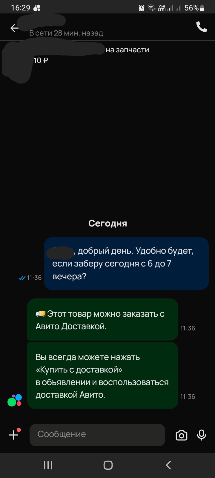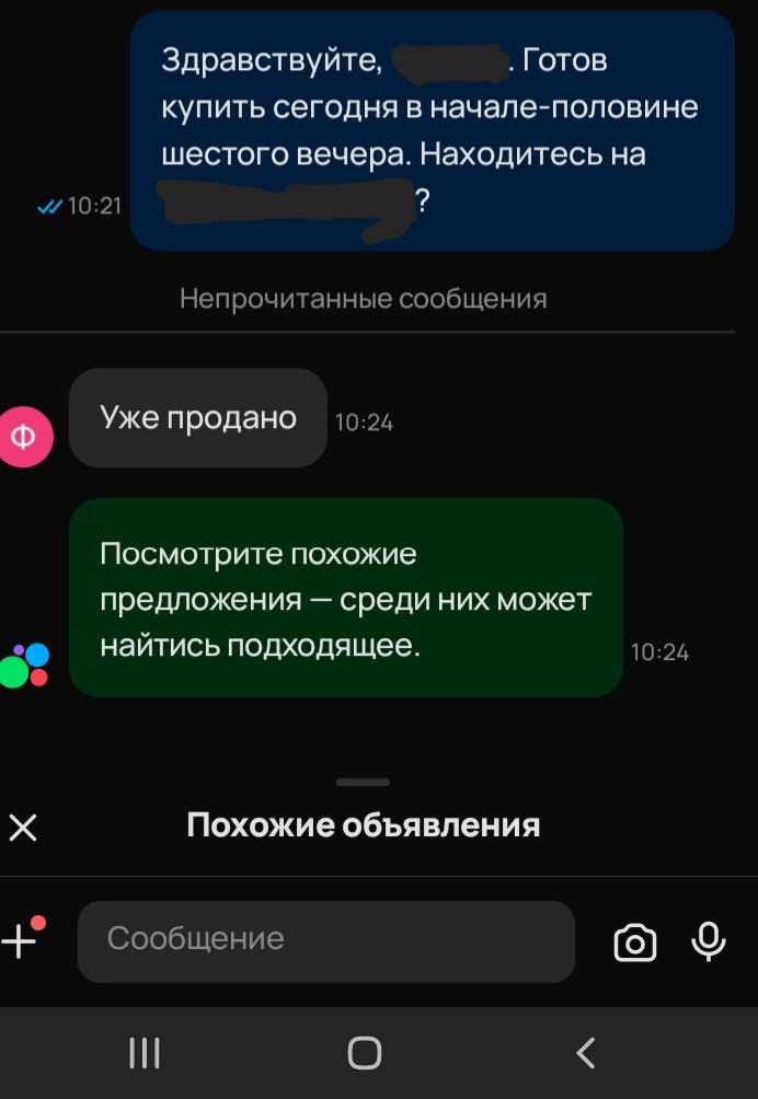 В: На авито приходят сообщения типа "еще продаете" или "отправите доставкой", отвечаю и дальше меня всегда игнорят, как быть? О: Гении из авито сделали кнопки для начала диалога, покупатель случайно их нажимает. Терпи.