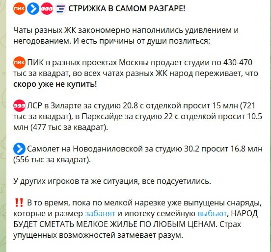 >>320184 >Давай и измеряй от первой очереди Зачем? На пиках как раз от второй очереди. В первой либо оверпрайс либо уже разобрали вкусные лоты