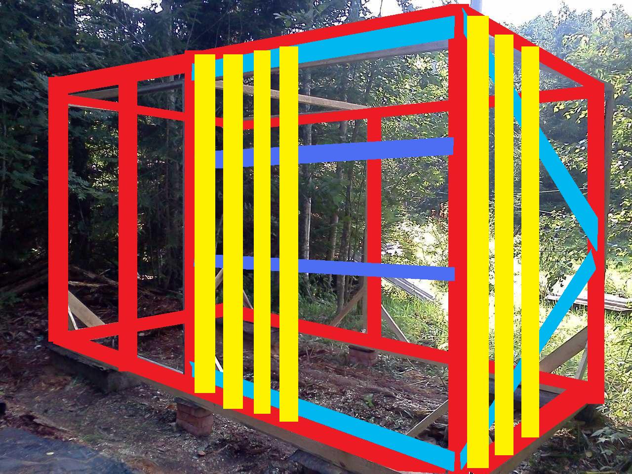 >>5221 синие прибиваешь на внешнюю сторону и покрепче, гвоздя по 3. Они все свяжут. Ты уже начал валить лес?