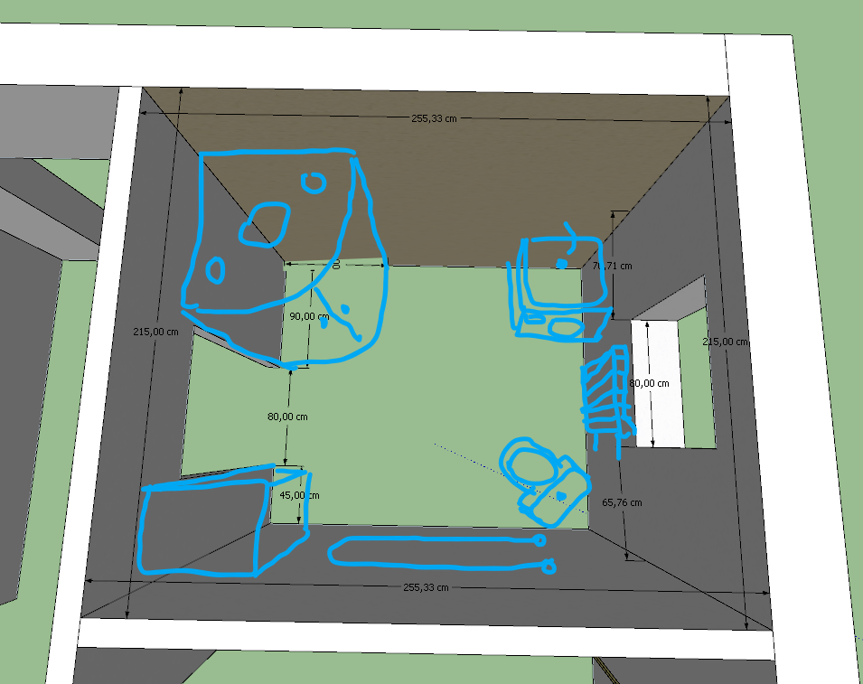 >>320421 не, здесь тебе почти делать нихуя не надо Закидываешь подложкой свой план квартиры, настраиваешь размеры мерной линейкой по какому-нибудь эталонному значению на плане (у меня стол был 1,2м) Потом хуяришь стены. Главное делай их замкнутыми, а уже потом вставляй двери и окна, я забил хуй на это и не могу сейчас пол и потолок сделать, а переделывать пока лень Сами модельки берешь из каталога. Там их много, но много чего найти не получится. Например, я не стал ебаться с кухней в потолок, а просто накидал ящиков, чтобы ориентироваться по размерам. Вот например, накидал себе примерный дизайн - скинул уже дизайнеру и она проверила все размеры и дала мне нормальный план