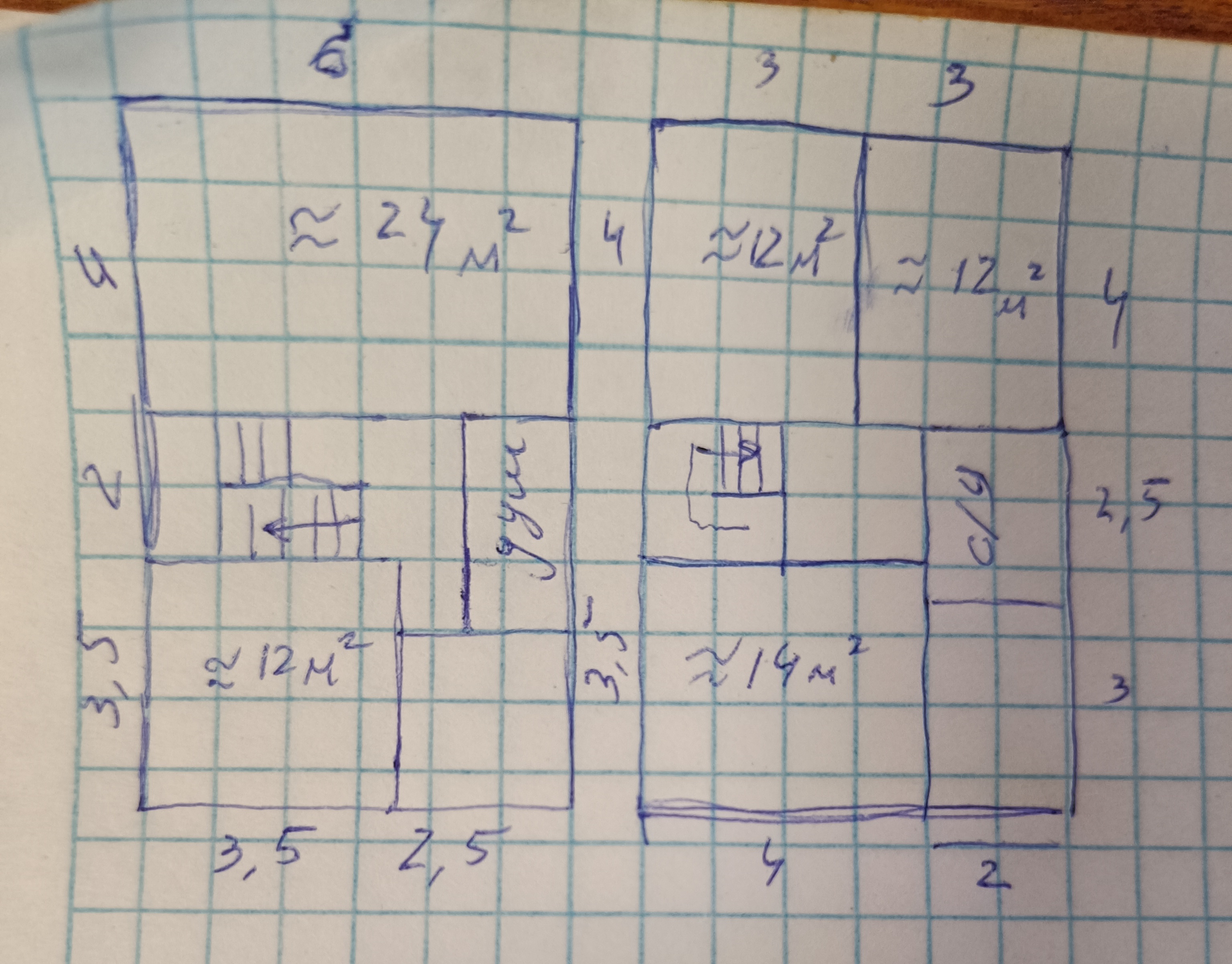 >>374034 Да площадям комнат нормально, примерно набросал, без учёта толщины стен, длина даже 9.5 получилась. Обычно на таких узких участках в глубину можно сколько угодно расти. Котел можно повесить в прихожей. Лестница да, из-за узкого простенка до двери в спальню на 2м этаже скорее всего будет с забежными ступенями.