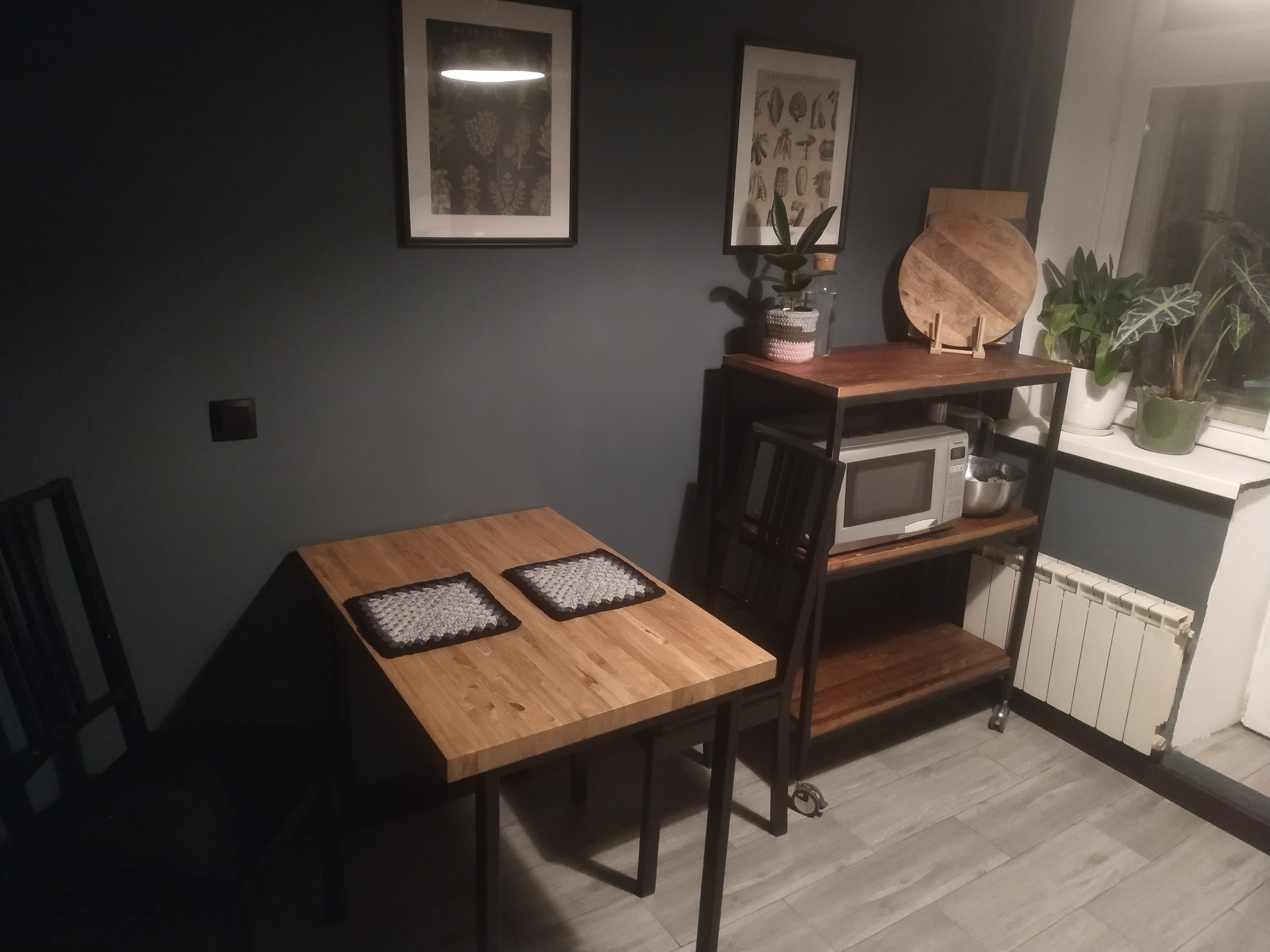 По поводу материала. Если есть бабки то возьми дубовый мебельный щит толщиной 18-20 мм. И на саморезы прям прикрути через старую столешку по всему периметру. Мокрой морилкой и лаком. Толще не нужно ибо пиздец тяжелая будет столешница а у нас площадь подстолья сильно меньше. 40 мм не надо. Если бабла нету возьми из лдсп столешку