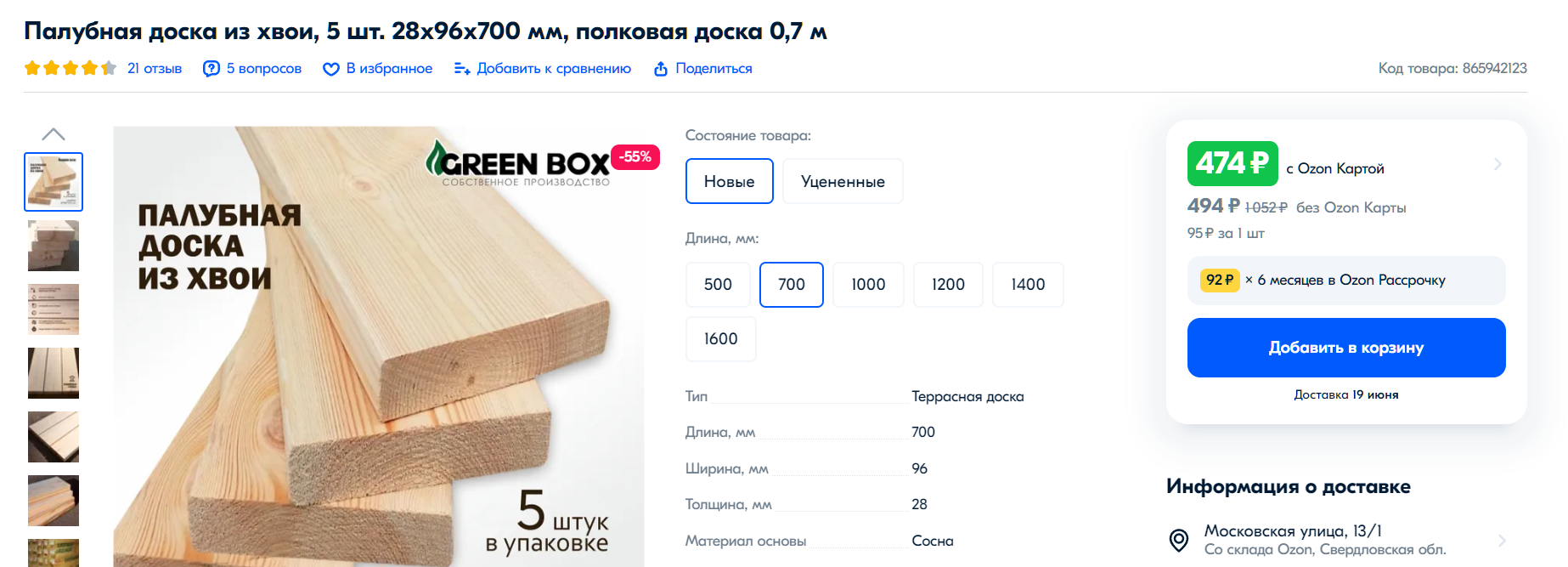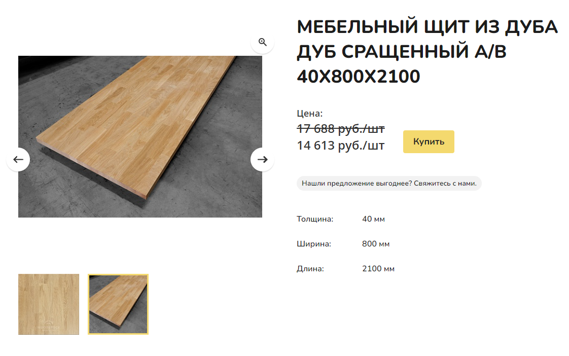 >>312359 По поводу покупки мебельного щита из дуба на озон, там очень завышены цены, ты можешь такой щит купить на строительном рынке на много дешевле. Пик 1. На озоне по твоей ссылки такого формата деревяшка стоит почти 9 тысяч.