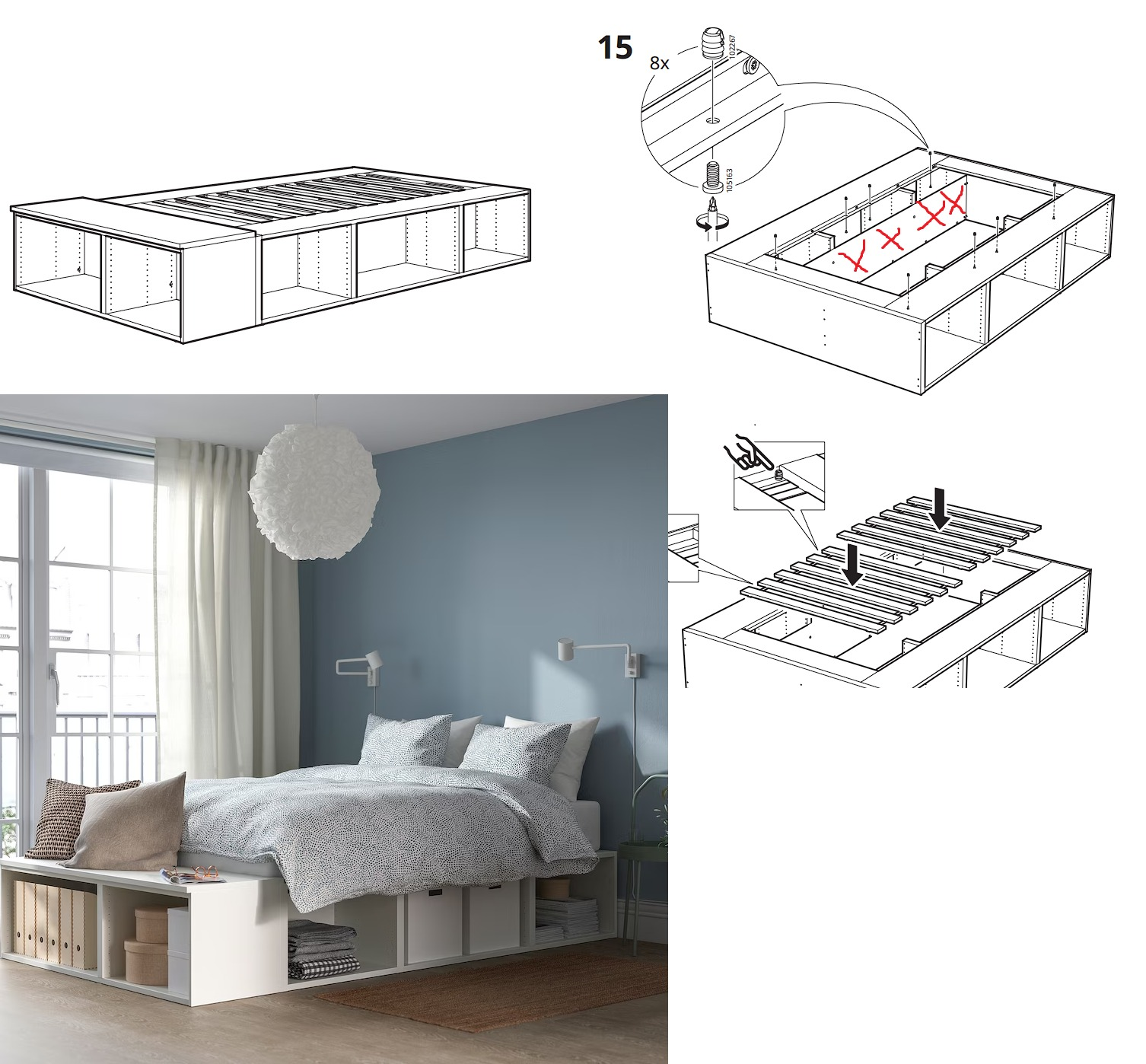 2) Над спальное место йоба подиум+шкаф-разделитель пространства 140х200см поверхность кровати. Нашел bestmebelshop там типо копия икеевской PLATSA пик 3 но по высоте меньше на целых 40см. И в икеевском варианте ламели, я хочу заменить их на просто панель-люк без фурнитуры и сверху стелить тонкий сворачивающийся матрас типо японец. По дефолту я так понял там максимум мдф верх сделают, это хуета же если потом с голой жопой-матрасом тонким сверху сидеть? Или заморочиться и туда сверху щит мебельный кинуть и сделать в нем люк? А может фанеру? А жопа не провалится под весом (обычная ~85кг)? Не поведет ли щит сам при условии обработки, если там окно+батарея впритык будет?